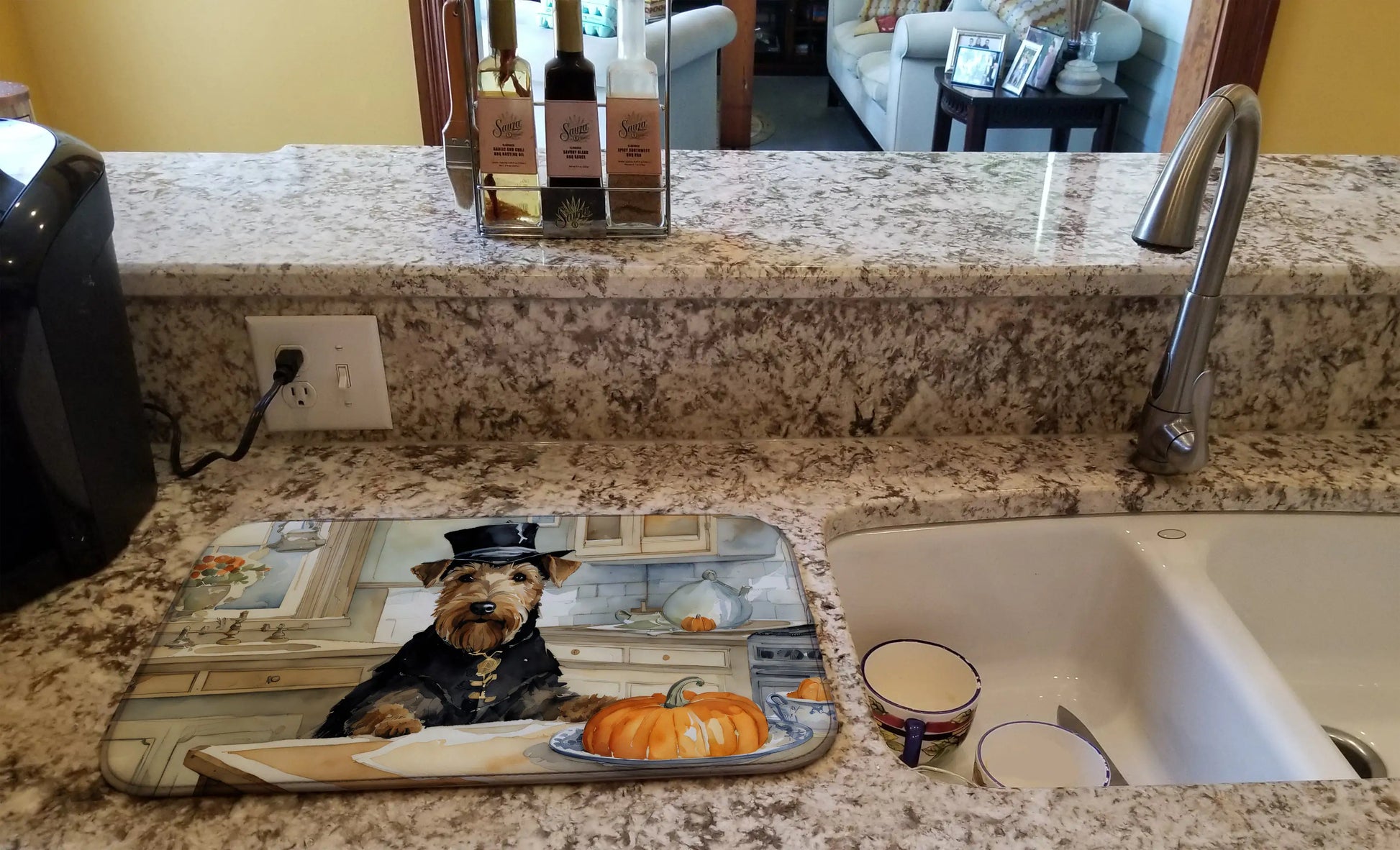 Airedale Terrier Fall Kitchen Pumpkins Dish Drying Mat