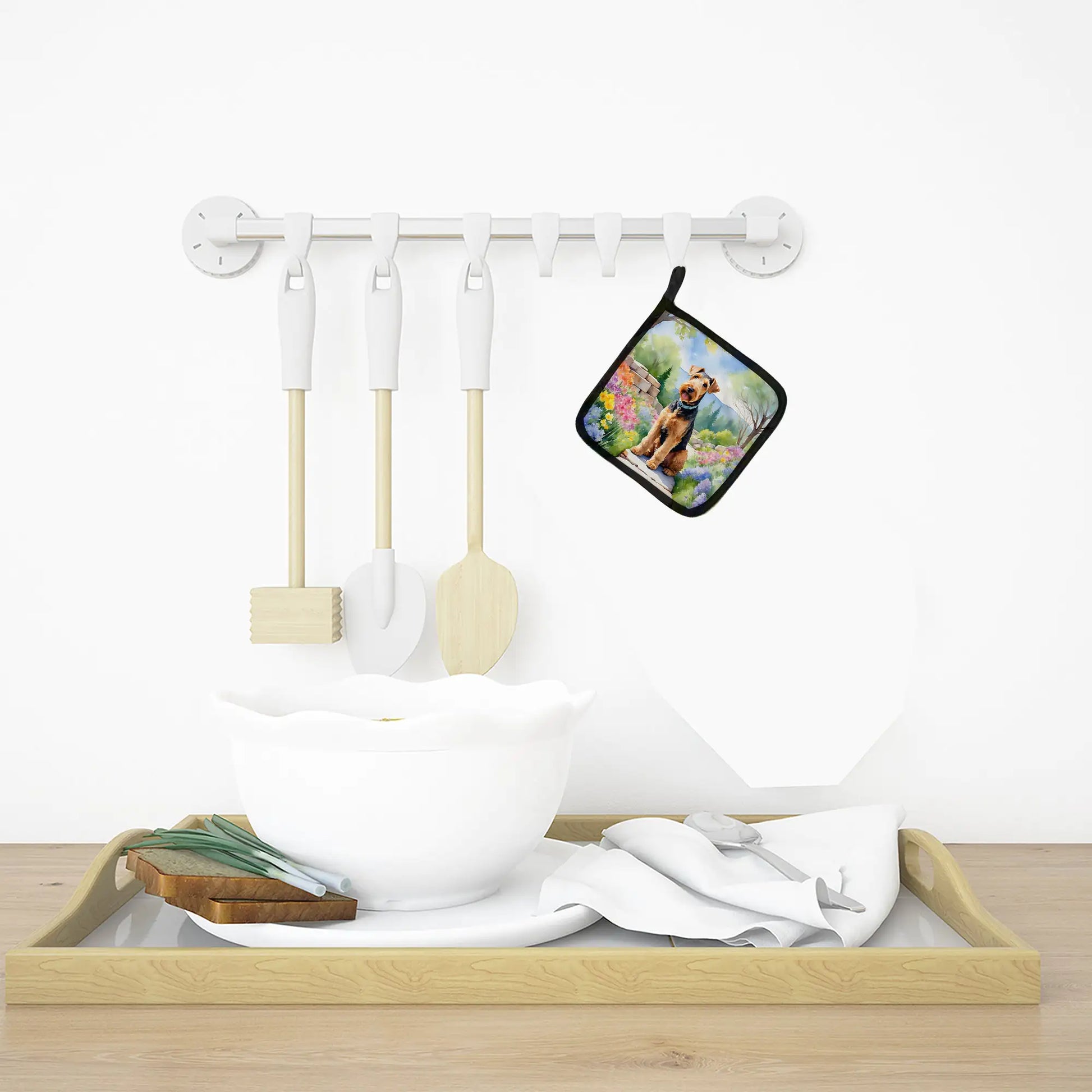 Airedale Terrier Spring Garden Pair of Pot Holders