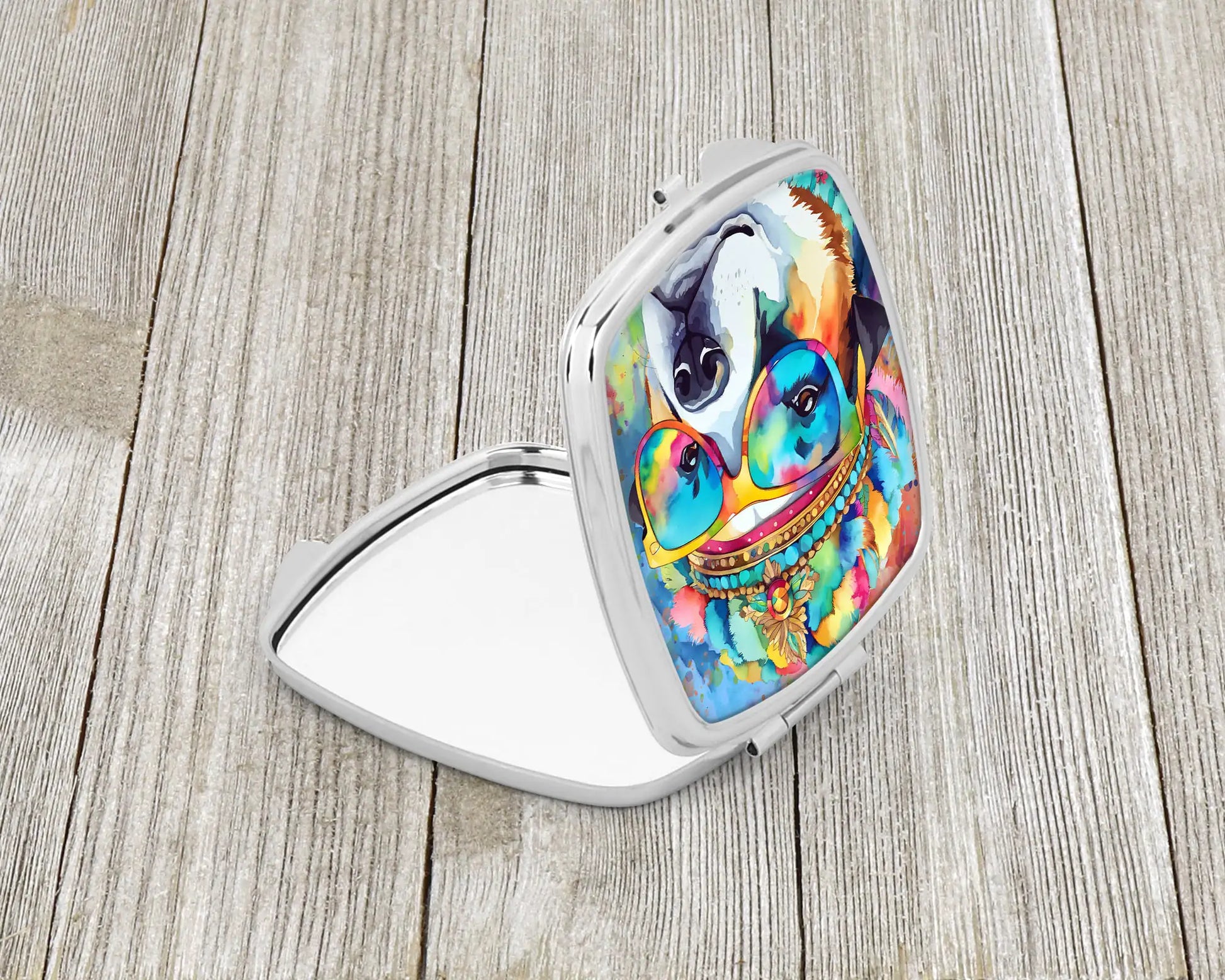 Compact Mirror featuring breed specific Akita artwork. Introducing our Square Compact Mirror, a blend of elegance, functionality, and compactness, perfect for on-the-go touch-ups. This Silvertone metal mirror, with dimensions of 2.75 inches x 3 inches x .3 inches, fits effortlessly into your purse, handbag, or pocket, ensuring that you can check your appearance anytime, anywhere. Our compact mirror stands out with its eye-catching artwork on the front, adding a dash of style to this practical accessory. It is more than just a mirror; it's a statement piece that reflects your personality and aesthetic. When opened, this compact reveals two mirrors inside, doubling your perspective for precise touch-ups. The Silvertone metal construction ensures durability while maintaining a lightweight feel, making it an ideal everyday carry item. Whether you're rushing to a meeting, prepping for a dinner date, or just need a quick check on your look, our Square Compact Mirror is your reliable companion. Experience the perfect blend of style and practicality with this must-have accessory.