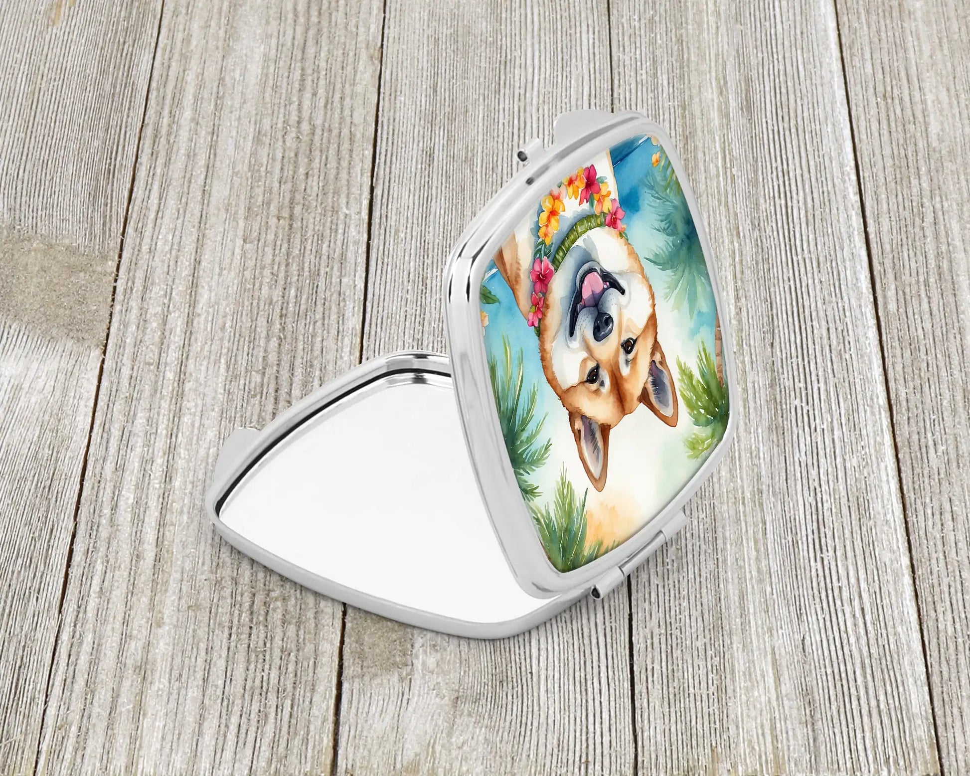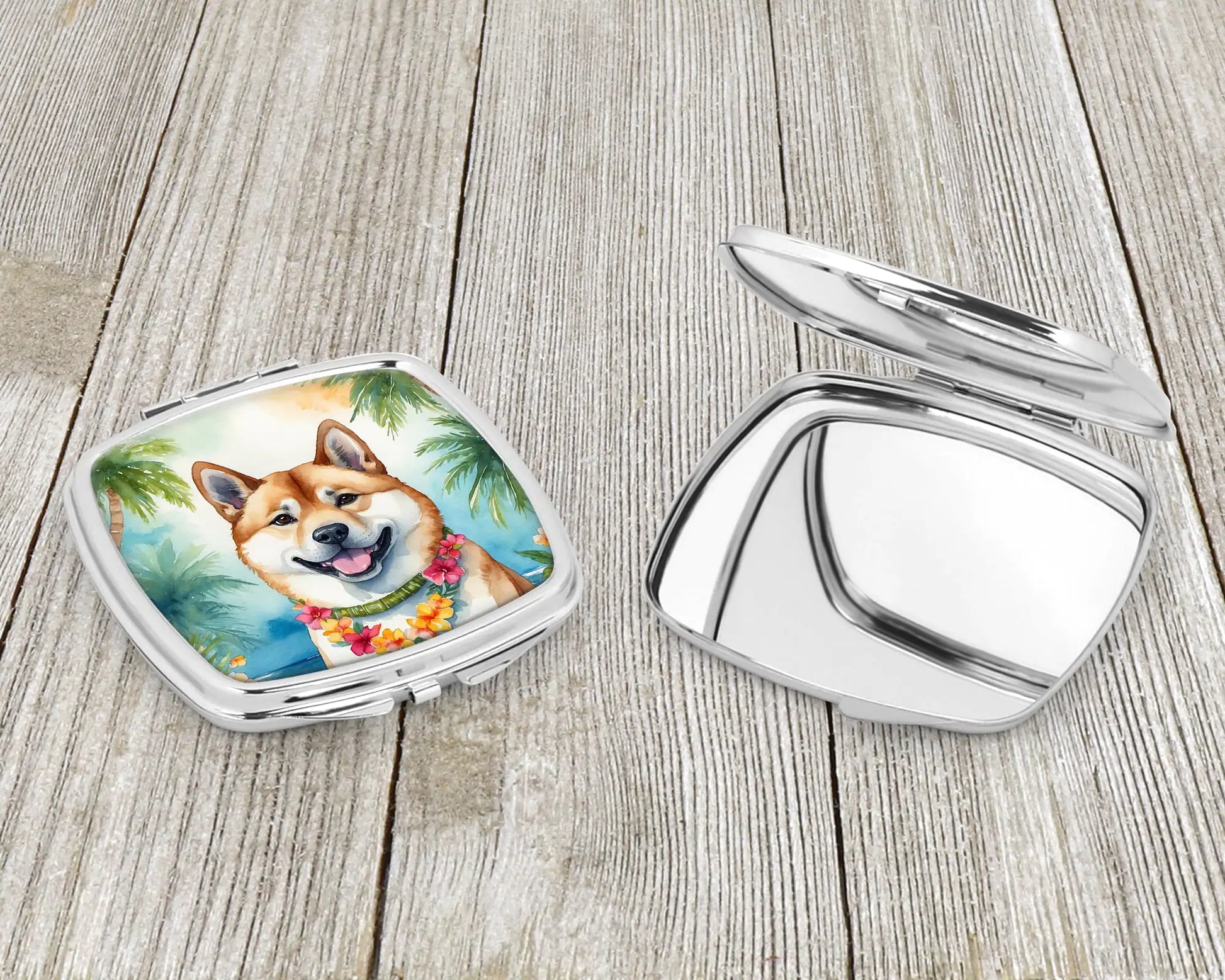 Compact Mirror featuring breed specific Akita artwork. Introducing our Square Compact Mirror, a blend of elegance, functionality, and compactness, perfect for on-the-go touch-ups. This Silvertone metal mirror, with dimensions of 2.75 inches x 3 inches x .3 inches, fits effortlessly into your purse, handbag, or pocket, ensuring that you can check your appearance anytime, anywhere. Our compact mirror stands out with its eye-catching artwork on the front, adding a dash of style to this practical accessory. It is more than just a mirror; it's a statement piece that reflects your personality and aesthetic. When opened, this compact reveals two mirrors inside, doubling your perspective for precise touch-ups. The Silvertone metal construction ensures durability while maintaining a lightweight feel, making it an ideal everyday carry item. Whether you're rushing to a meeting, prepping for a dinner date, or just need a quick check on your look, our Square Compact Mirror is your reliable companion. Experience the perfect blend of style and practicality with this must-have accessory.