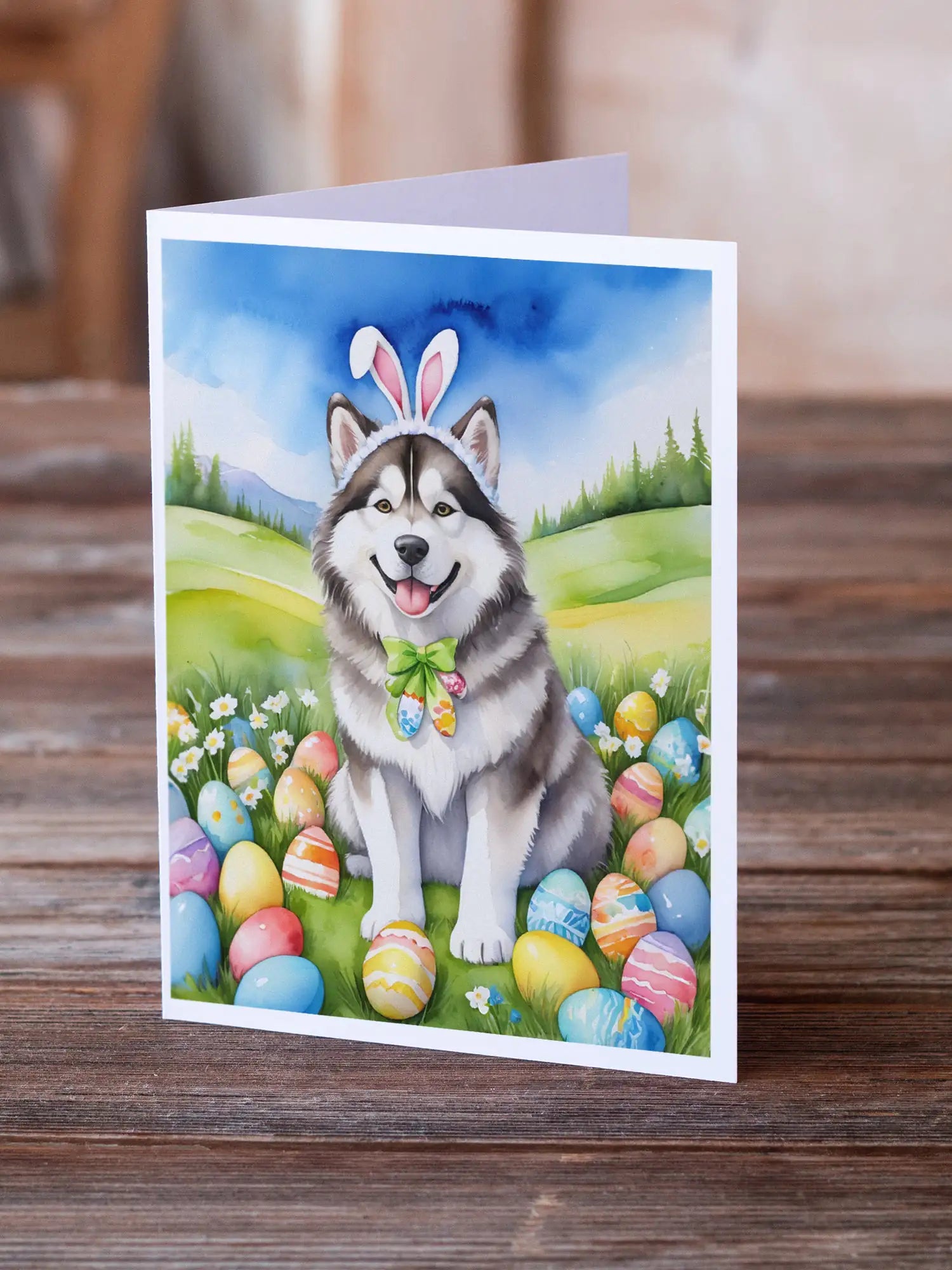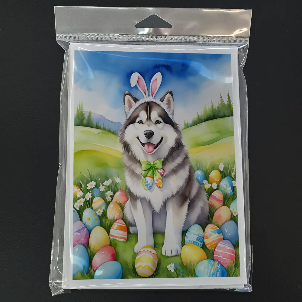 Alaskan Malamute Easter Egg Hunt Greeting Cards Pack of 8