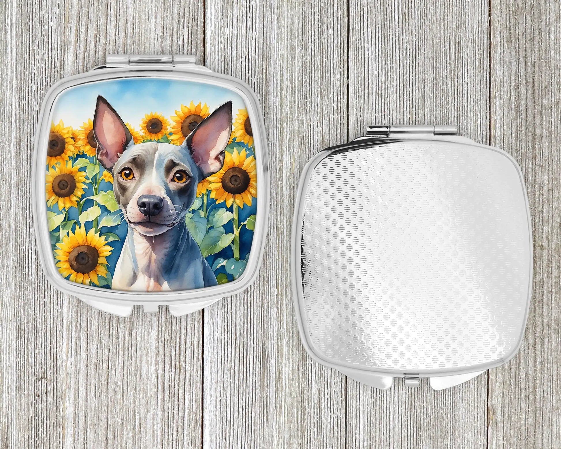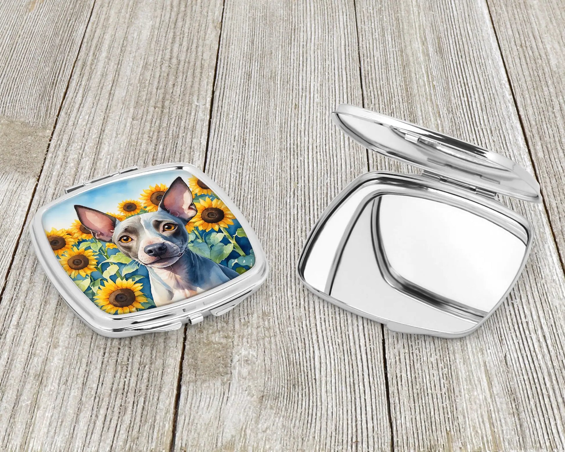 Compact Mirror featuring breed specific American Hairless Terrier artwork. Introducing our Square Compact Mirror, a blend of elegance, functionality, and compactness, perfect for on-the-go touch-ups. This Silvertone metal mirror, with dimensions of 2.75 inches x 3 inches x .3 inches, fits effortlessly into your purse, handbag, or pocket, ensuring that you can check your appearance anytime, anywhere. Our compact mirror stands out with its eye-catching artwork on the front, adding a dash of style to this practical accessory. It is more than just a mirror; it's a statement piece that reflects your personality and aesthetic. When opened, this compact reveals two mirrors inside, doubling your perspective for precise touch-ups. The Silvertone metal construction ensures durability while maintaining a lightweight feel, making it an ideal everyday carry item. Whether you're rushing to a meeting, prepping for a dinner date, or just need a quick check on your look, our Square Compact Mirror is your reliable companion. Experience the perfect blend of style and practicality with this must-have accessory.