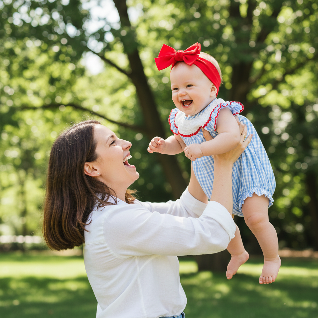 Celebrate Independence Day in style with this  adorable romper set ! Featuring  delicate American flag embroiderysmocked detailing , and  puffy bubble romper , this outfit is perfect for  4th of July festivitiesfamily BBQs , or  photo shoots . The set includes a  matching bowknot headband  to complete the look. Made from  breathable fabric , it keeps your baby girl comfortable while showing off her patriotic spirit.