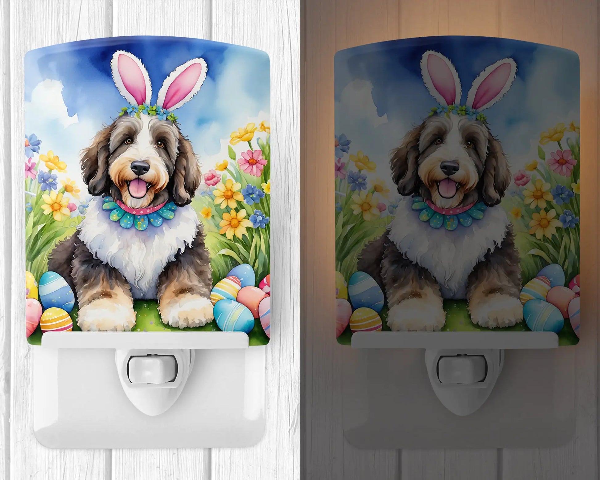 Bernedoodle Easter Egg Hunt Ceramic Night Light