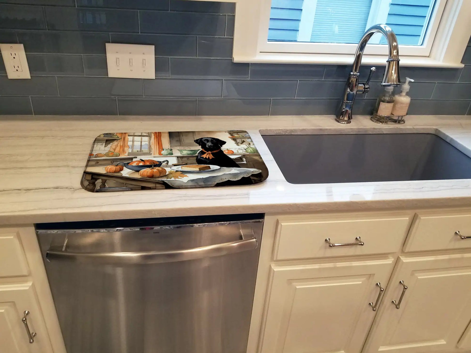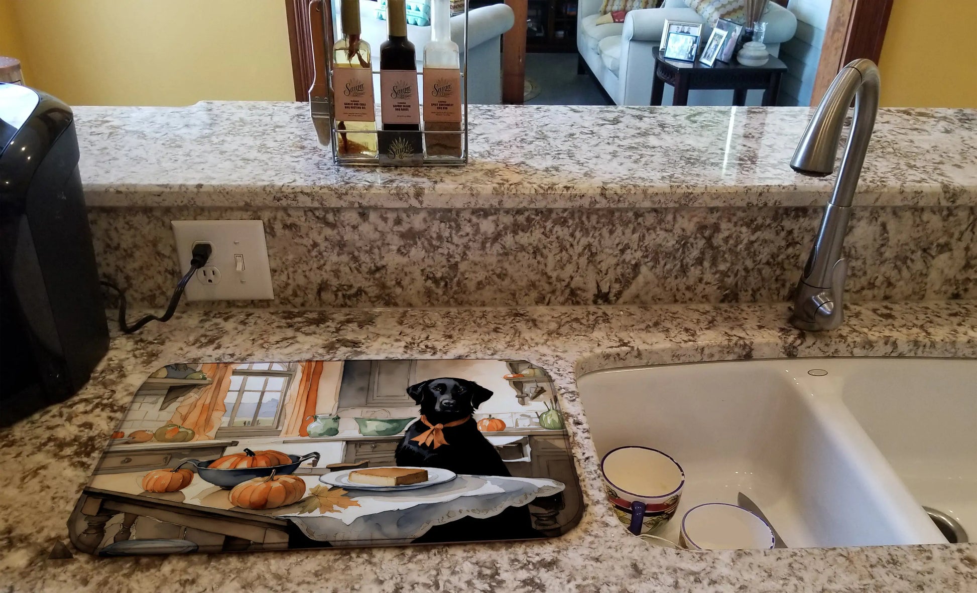 Black Lab Fall Kitchen Pumpkins Dish Drying Mat