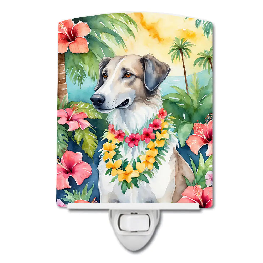 Ceramic Night Light featuring breed specific Borzoi Russian Wolfhound artwork. Introduce a splash of artistic flair and subtle illumination to your space with the Decorative Ceramic Night Light from Caroline's Treasures. Perfect for any room, this night light seamlessly blends functionality with an aesthetic appeal, offering a stylish solution to brighten up dark corners of your home or office. Boasting a six-inch high by four-inch wide ceramic tile at the front, it showcases vivid, full-color artwork from distinguished artists, transforming a simple utility into a vibrant art piece. The artwork is securely encased in a robust metal holder, ensuring durability and longevity. Two screws are provided to firmly affix the tile into the holder. The holder extends three inches deep, housing an included bulb that emits a soft, welcoming glow. This product meets all safety standards, as evidenced by its UL approval. Proudly made in the United States from imported components, this Decorative Ceramic Night Light is not just a functional device; it's a statement piece that enhances the ambiance of your surroundings.