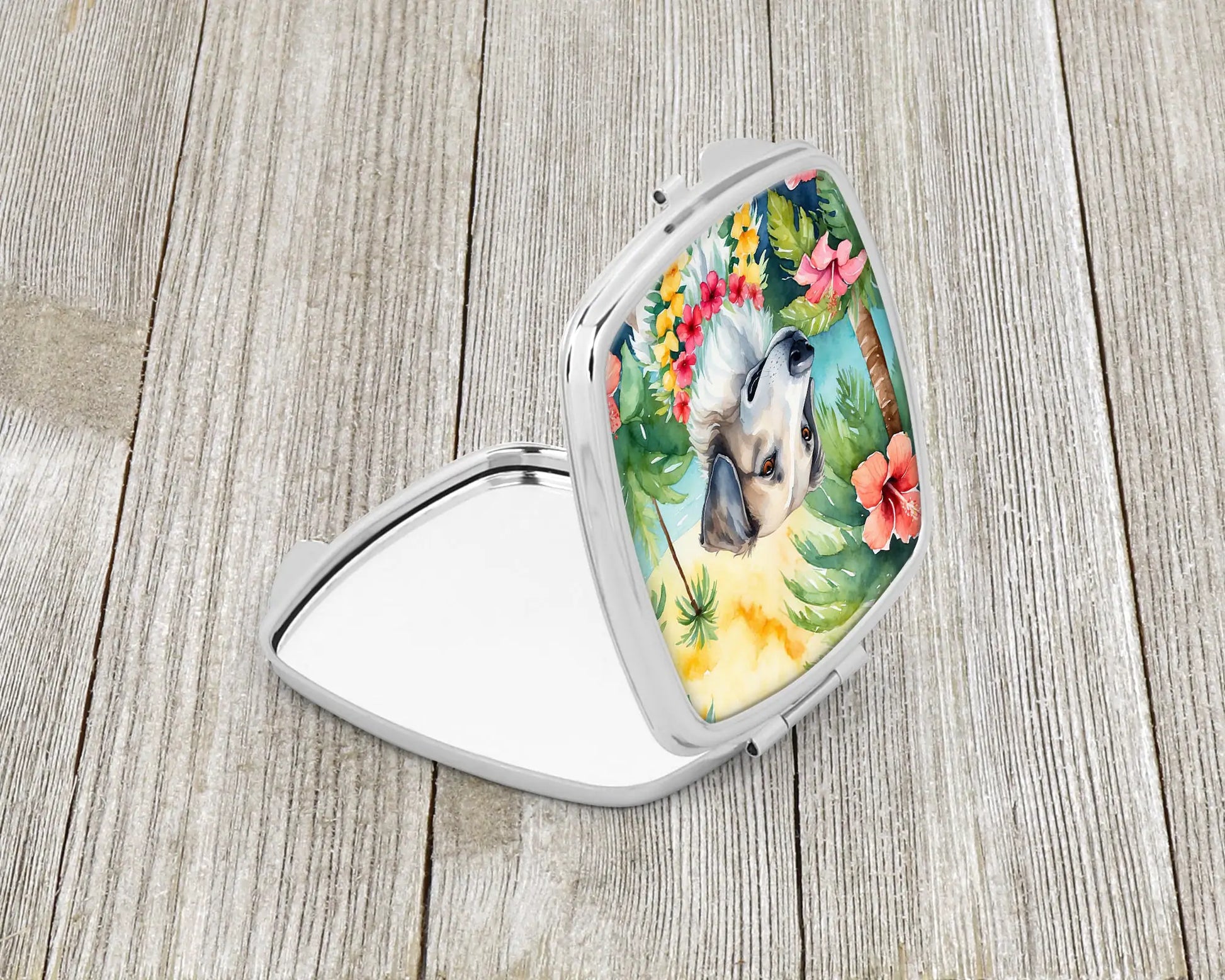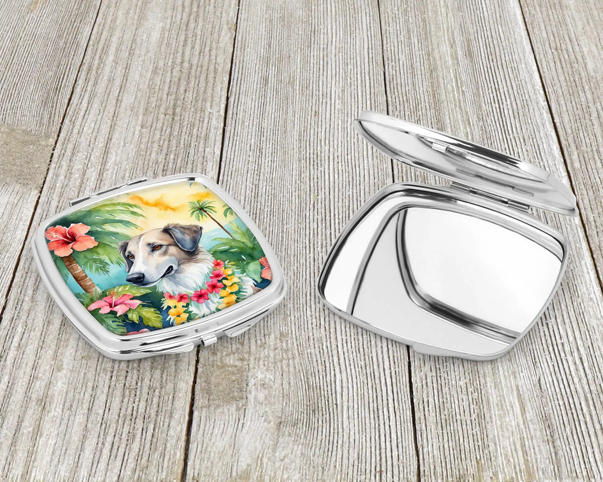 Compact Mirror featuring breed specific Borzoi Russian Wolfhound artwork. Introducing our Square Compact Mirror, a blend of elegance, functionality, and compactness, perfect for on-the-go touch-ups. This Silvertone metal mirror, with dimensions of 2.75 inches x 3 inches x .3 inches, fits effortlessly into your purse, handbag, or pocket, ensuring that you can check your appearance anytime, anywhere. Our compact mirror stands out with its eye-catching artwork on the front, adding a dash of style to this practical accessory. It is more than just a mirror; it's a statement piece that reflects your personality and aesthetic. When opened, this compact reveals two mirrors inside, doubling your perspective for precise touch-ups. The Silvertone metal construction ensures durability while maintaining a lightweight feel, making it an ideal everyday carry item. Whether you're rushing to a meeting, prepping for a dinner date, or just need a quick check on your look, our Square Compact Mirror is your reliable companion. Experience the perfect blend of style and practicality with this must-have accessory.