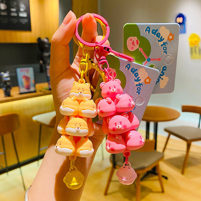 Introducing the Car Chain Fashion Keychain, a unique and stylish accessory that will elevate your fashion game to the next level. This keychain comes in a pair, with one designed as a cute handbag pendant and the other as a trendy car chain. Made from high-quality PVC and metal, this keychain is not only durable but also eye-catching. Choose from three fun and playful designs - party animal jenga-frog, party animal jenga-bear, and party animal jenga-shiba Inu - to match your personal style. Use it as a keychain or attach it to your schoolbag for a touch of personality. Get yours now and make a statement wherever you go!