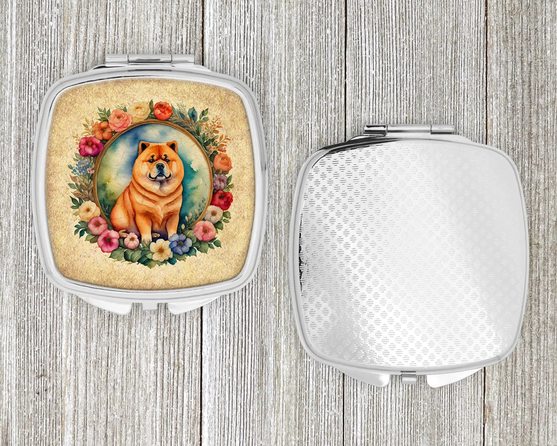 Compact Mirror featuring breed specific Chow Chow artwork. Introducing our Square Compact Mirror, a blend of elegance, functionality, and compactness, perfect for on-the-go touch-ups. This Silvertone metal mirror, with dimensions of 2.75 inches x 3 inches x .3 inches, fits effortlessly into your purse, handbag, or pocket, ensuring that you can check your appearance anytime, anywhere. Our compact mirror stands out with its eye-catching artwork on the front, adding a dash of style to this practical accessory. It is more than just a mirror; it's a statement piece that reflects your personality and aesthetic. When opened, this compact reveals two mirrors inside, doubling your perspective for precise touch-ups. The Silvertone metal construction ensures durability while maintaining a lightweight feel, making it an ideal everyday carry item. Whether you're rushing to a meeting, prepping for a dinner date, or just need a quick check on your look, our Square Compact Mirror is your reliable companion. Experience the perfect blend of style and practicality with this must-have accessory.