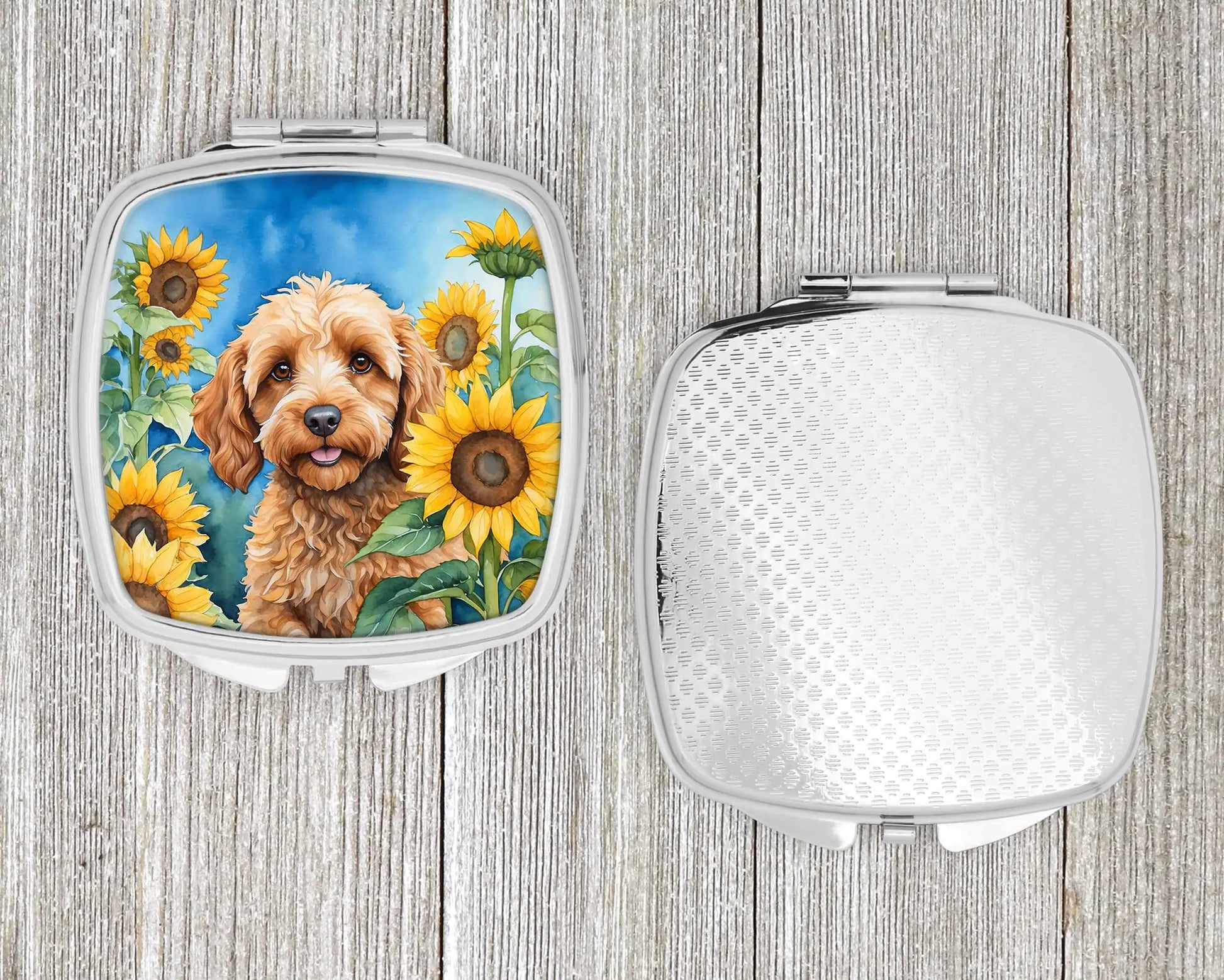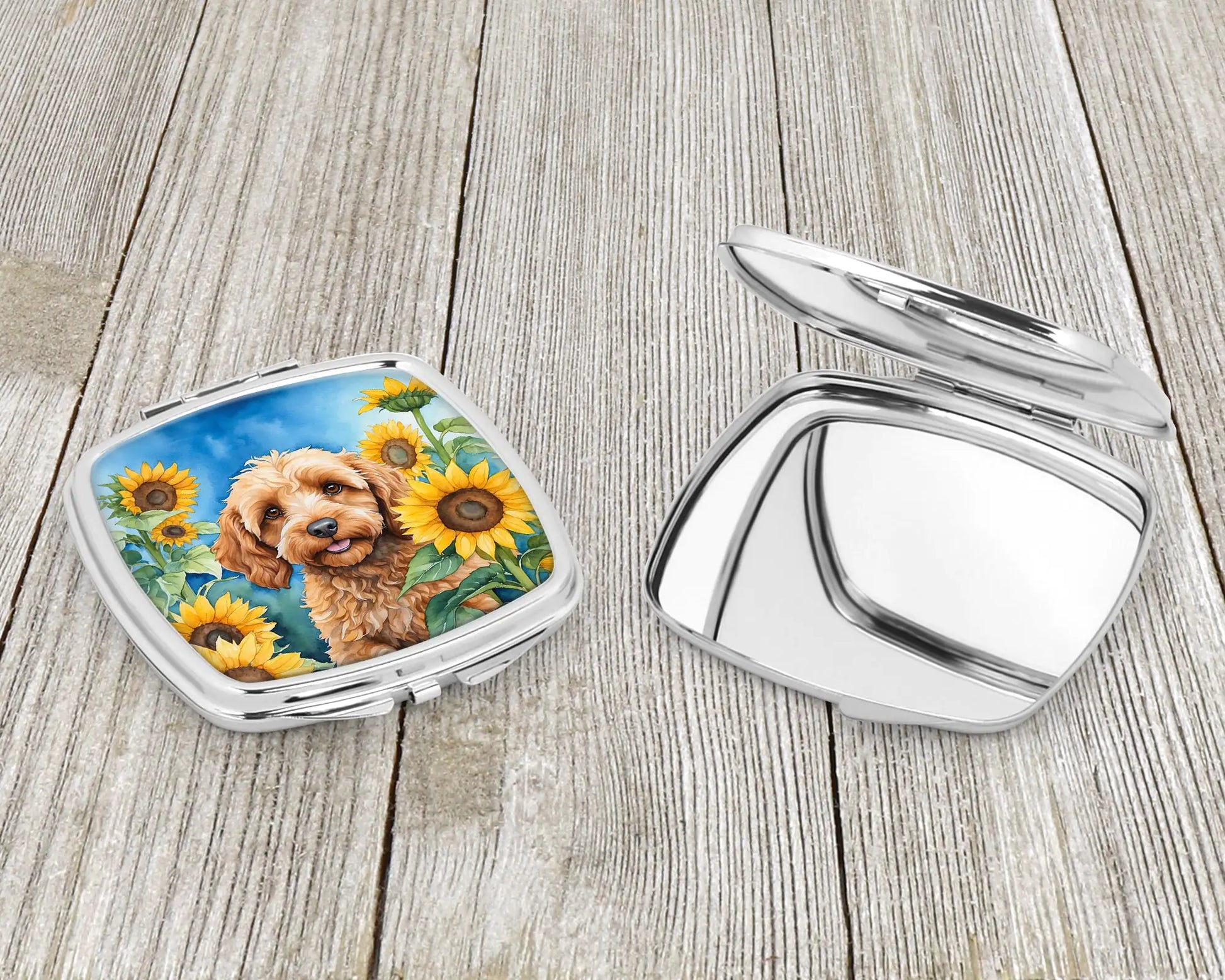 Compact Mirror featuring breed specific Cockapoo artwork. Introducing our Square Compact Mirror, a blend of elegance, functionality, and compactness, perfect for on-the-go touch-ups. This Silvertone metal mirror, with dimensions of 2.75 inches x 3 inches x .3 inches, fits effortlessly into your purse, handbag, or pocket, ensuring that you can check your appearance anytime, anywhere. Our compact mirror stands out with its eye-catching artwork on the front, adding a dash of style to this practical accessory. It is more than just a mirror; it's a statement piece that reflects your personality and aesthetic. When opened, this compact reveals two mirrors inside, doubling your perspective for precise touch-ups. The Silvertone metal construction ensures durability while maintaining a lightweight feel, making it an ideal everyday carry item. Whether you're rushing to a meeting, prepping for a dinner date, or just need a quick check on your look, our Square Compact Mirror is your reliable companion. Experience the perfect blend of style and practicality with this must-have accessory.