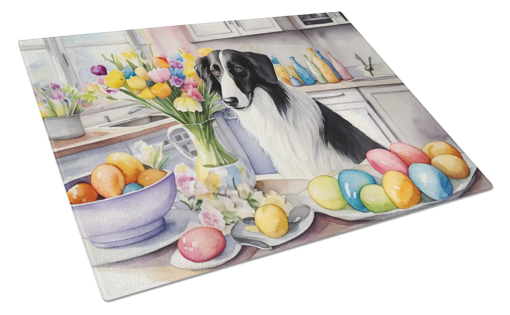 Glass Cutting Board featuring breed specific Borzoi Russian Wolfhound artwork. Celebrate Easter with this Easter Cutting Board. Introduce your kitchen to the vibrant, large Decorative Glass Cutting Board from Caroline's Treasures. Crafted from resilient tempered glass, this board is not only a utilitarian necessity but also a colorful art piece. With its generous dimensions of 15 inches in height and 12 inches in length, it offers ample space for all your cutting needs. Every piece showcases captivating artwork from distinguished artists, bringing an aesthetic edge to your kitchen. Beyond its attractive design, this cutting board ensures your countertop stays pristine and unscathed, owing to its heat-resistant properties. Engineered with user convenience in mind, it features non-skid feet for stability, and rounded corners for additional safety. Its robust construction renders it virtually unbreakable, guaranteeing longevity. The board comes with protective feet bumpers, maintaining its position during use. This product is recommended to be hand washed only. Proudly printed and assembled in the United States, this cutting board exemplifies superior craftsmanship. With Caroline's Treasures' Decorative Glass Cutting Board, you're investing in a blend of functionality and artistic flair.
