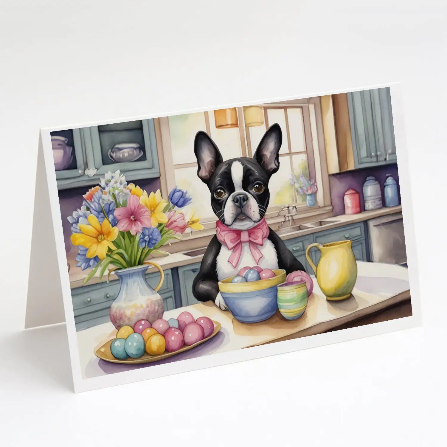 Decorating Easter Boston Terrier Greeting Cards Pack of 8