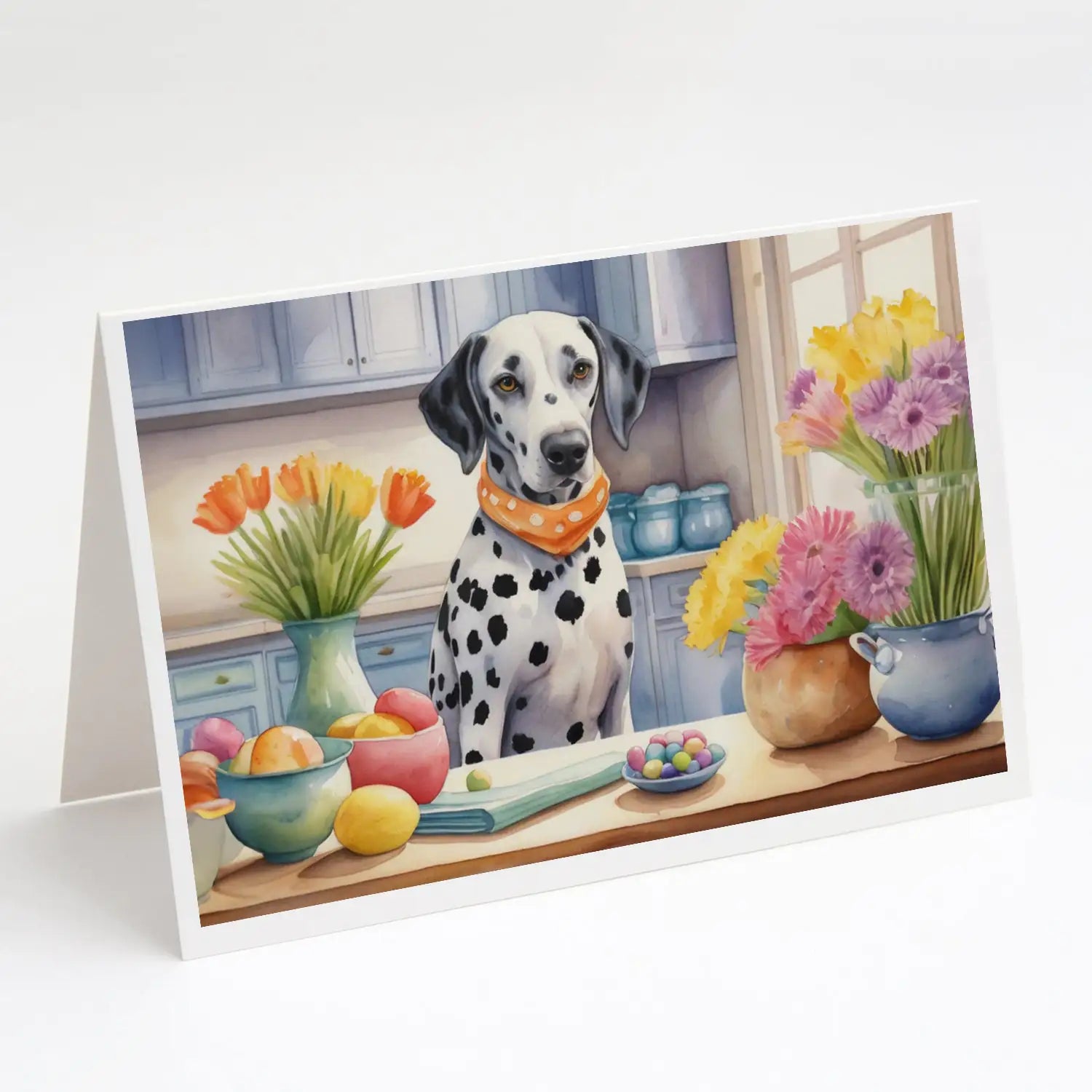 Greeting Cards Pack of 8 featuring breed specific Dalmatian artwork. Celebrate Easter with this Easter . Celebrate special moments with Caroline's Treasures Printed Greeting Card Pack. This pack includes eight beautifully folded 5x7 cards, accompanied by eight matching white envelopes. With blank interiors, these cards provide ample space for your personalized messages and heartfelt holiday greetings. Each card features captivating full-color artwork, meticulously printed in our facility on high-quality 80 lb cover stock or 216 GSM. The super smooth finish of the white cards enhances the visual impact of the artwork, creating a truly stunning presentation. Designed by our talented in-house artists or licensed artists, the artwork on these cards showcases their creativity and attention to detail. From vibrant illustrations to captivating designs, each card tells its own unique story. Whether it's for birthdays, anniversaries, holidays, or any special occasion, Caroline's Treasures Greeting Card Pack is the perfect way to convey your heartfelt sentiments. Share joy, love, and warm wishes with these exquisite cards and make every moment unforgettable.