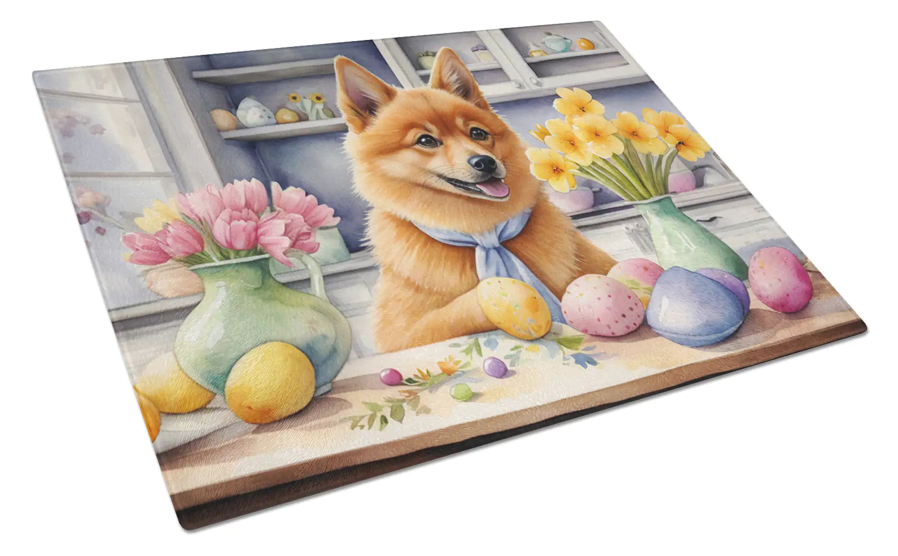 Decorating Easter Finnish Spitz Glass Cutting Board