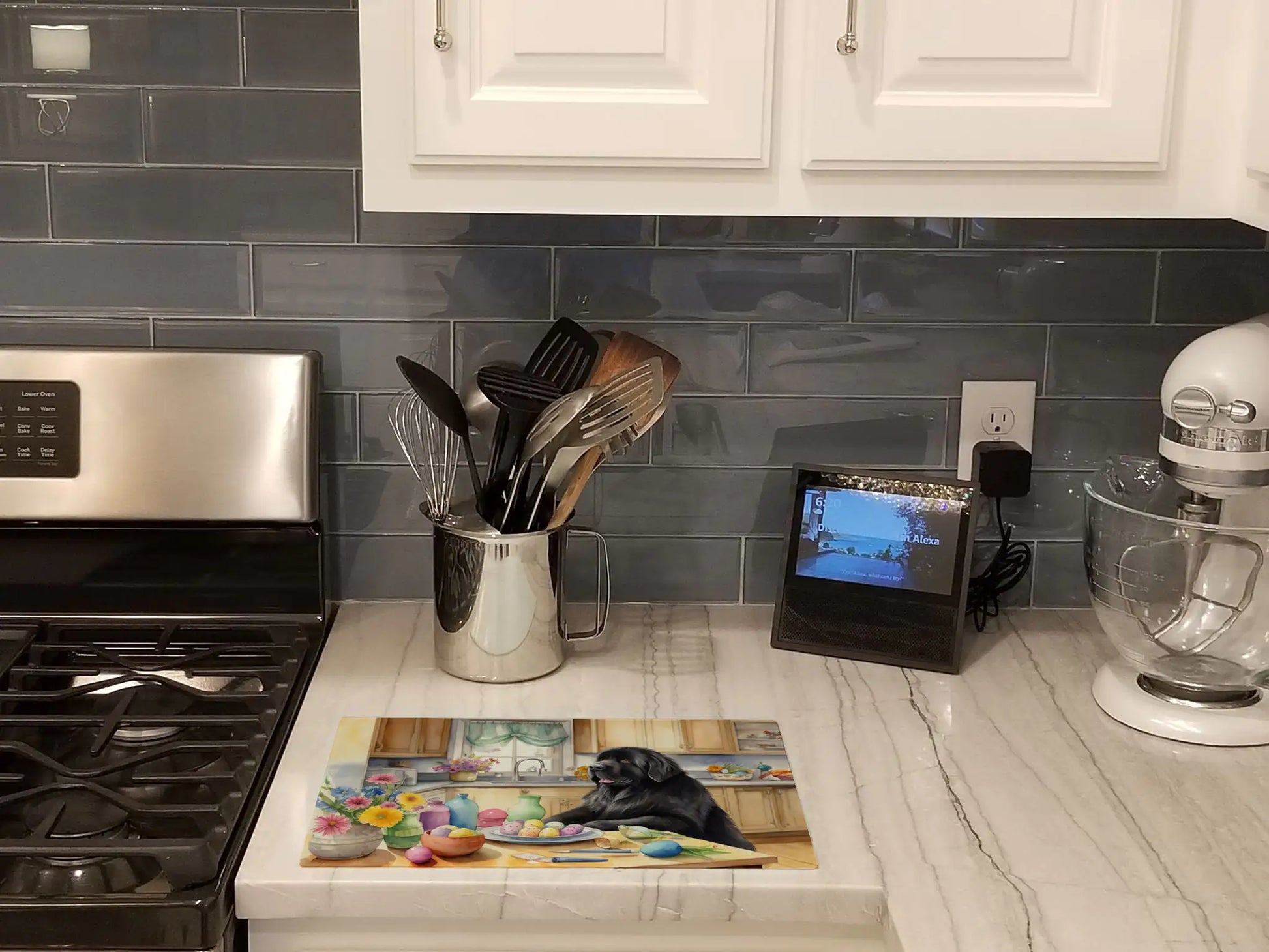 Glass Cutting Board featuring breed specific Newfoundland artwork. Celebrate Easter with this Easter Cutting Board. Introduce your kitchen to the vibrant, large Decorative Glass Cutting Board from Caroline's Treasures. Crafted from resilient tempered glass, this board is not only a utilitarian necessity but also a colorful art piece. With its generous dimensions of 15 inches in height and 12 inches in length, it offers ample space for all your cutting needs. Every piece showcases captivating artwork from distinguished artists, bringing an aesthetic edge to your kitchen. Beyond its attractive design, this cutting board ensures your countertop stays pristine and unscathed, owing to its heat-resistant properties. Engineered with user convenience in mind, it features non-skid feet for stability, and rounded corners for additional safety. Its robust construction renders it virtually unbreakable, guaranteeing longevity. The board comes with protective feet bumpers, maintaining its position during use. This product is recommended to be hand washed only. Proudly printed and assembled in the United States, this cutting board exemplifies superior craftsmanship. With Caroline's Treasures' Decorative Glass Cutting Board, you're investing in a blend of functionality and artistic flair.