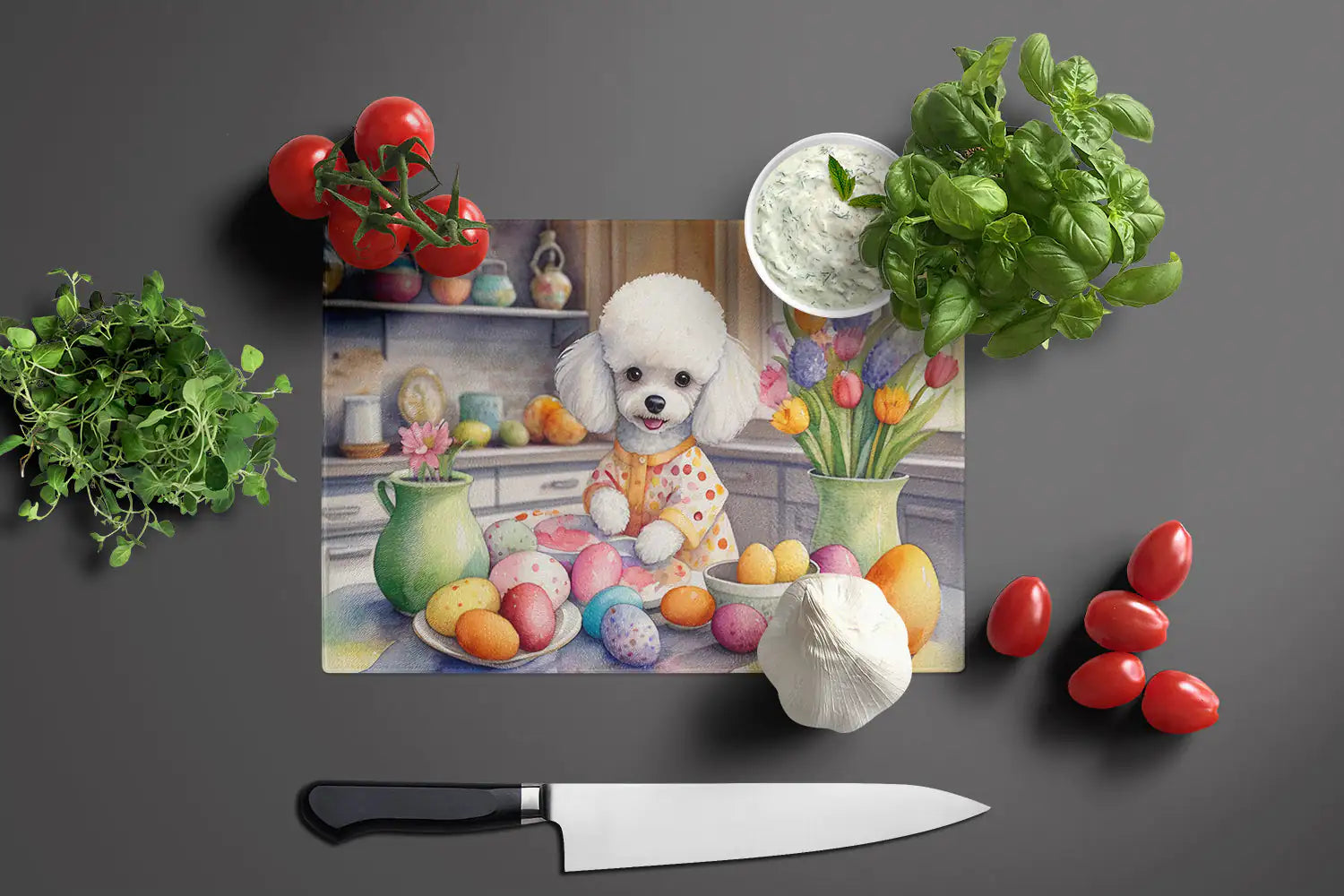 Decorating Easter White Poodle Glass Cutting Board