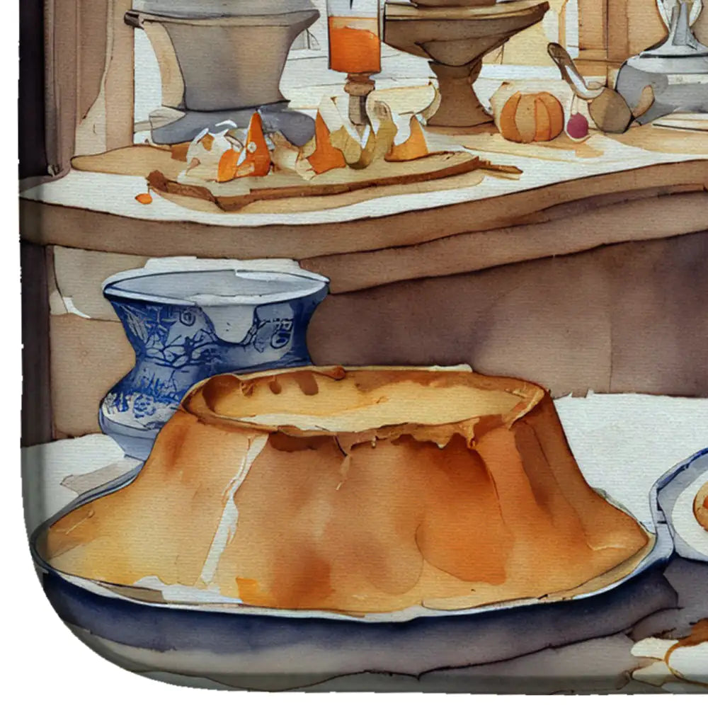 Dish Drying Mat featuring breed specific Doberman Pinscher artwork. Celebrate Halloween with this Halloween Dish Drying Mat. Say goodbye to messy countertops and soggy dish towels with our innovative dish drying mat. Our high-quality dish drying pad is designed to keep your countertops dry while offering a stylish and efficient solution. Whether you're air drying dishes, glasses, stemware, silverware, pots, pans, bottles, or even fruits and vegetables, our dish mat is the perfect choice. The 14 inches x 22 inches size fits most counters and dish drying racks, and the non-slip design ensures stability. Made with water-absorbent polyester and a polyurethane foam insert, our dish drying mat is not only functional but also durable. It's machine washable and printed in the USA for long-lasting use. The beautiful artwork adds flair to your kitchen decor, making it a perfect housewarming gift or present for any occasion. Upgrade your kitchen experience with our absorbent and versatile dish drying mat.