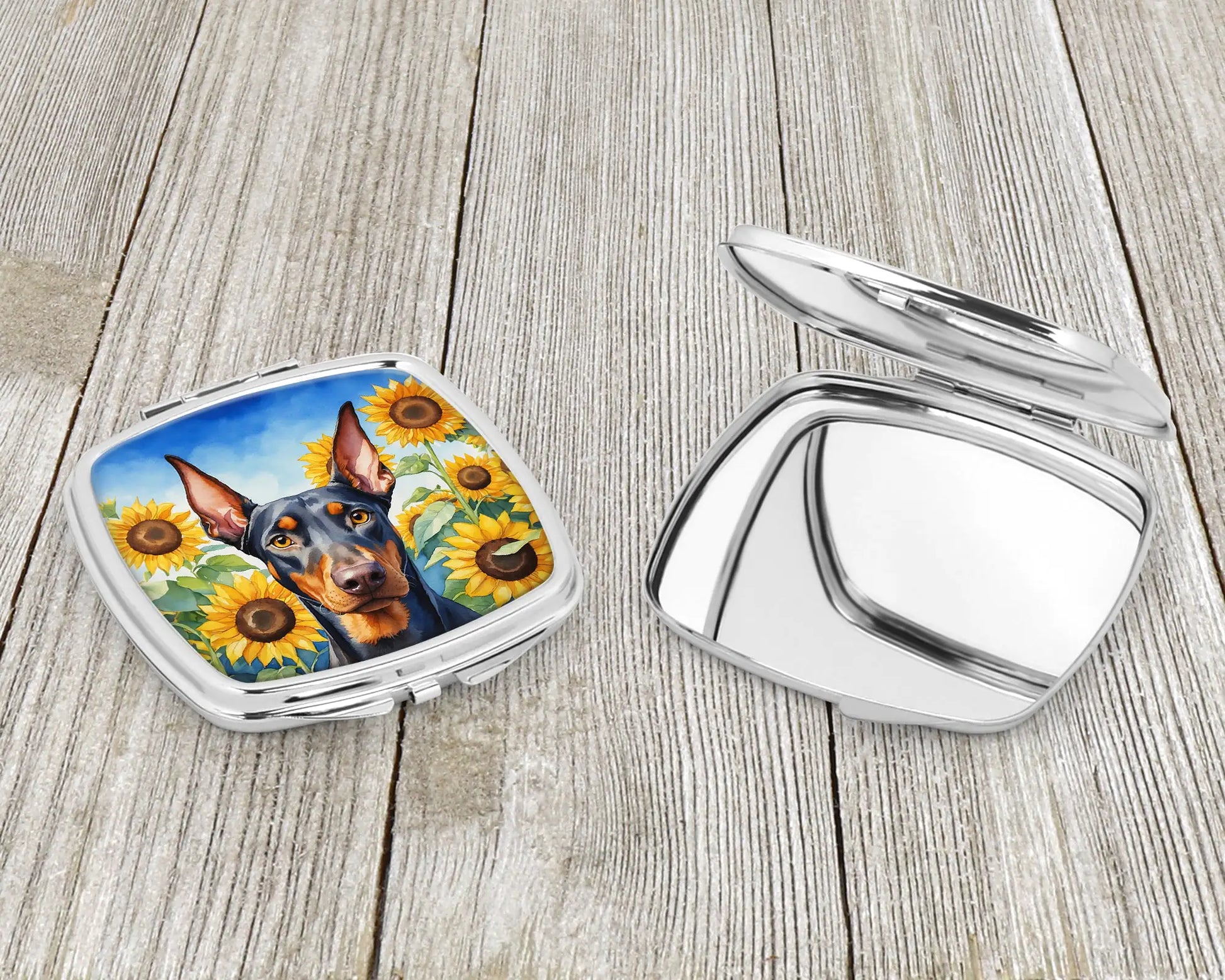 Compact Mirror featuring breed specific Doberman Pinscher artwork. Introducing our Square Compact Mirror, a blend of elegance, functionality, and compactness, perfect for on-the-go touch-ups. This Silvertone metal mirror, with dimensions of 2.75 inches x 3 inches x .3 inches, fits effortlessly into your purse, handbag, or pocket, ensuring that you can check your appearance anytime, anywhere. Our compact mirror stands out with its eye-catching artwork on the front, adding a dash of style to this practical accessory. It is more than just a mirror; it's a statement piece that reflects your personality and aesthetic. When opened, this compact reveals two mirrors inside, doubling your perspective for precise touch-ups. The Silvertone metal construction ensures durability while maintaining a lightweight feel, making it an ideal everyday carry item. Whether you're rushing to a meeting, prepping for a dinner date, or just need a quick check on your look, our Square Compact Mirror is your reliable companion. Experience the perfect blend of style and practicality with this must-have accessory.
