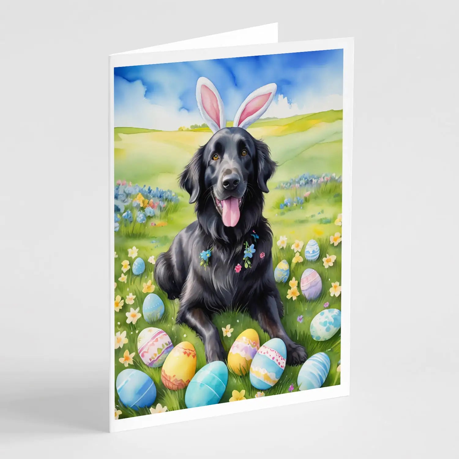 Greeting Cards Pack of 8 featuring breed specific Flat-Coated Retriever artwork. Celebrate Easter with this Easter . Celebrate special moments with Caroline's Treasures Printed Greeting Card Pack. This pack includes eight beautifully folded 5x7 cards, accompanied by eight matching white envelopes. With blank interiors, these cards provide ample space for your personalized messages and heartfelt holiday greetings. Each card features captivating full-color artwork, meticulously printed in our facility on high-quality 80 lb cover stock or 216 GSM. The super smooth finish of the white cards enhances the visual impact of the artwork, creating a truly stunning presentation. Designed by our talented in-house artists or licensed artists, the artwork on these cards showcases their creativity and attention to detail. From vibrant illustrations to captivating designs, each card tells its own unique story. Whether it's for birthdays, anniversaries, holidays, or any special occasion, Caroline's Treasures Greeting Card Pack is the perfect way to convey your heartfelt sentiments. Share joy, love, and warm wishes with these exquisite cards and make every moment unforgettable.