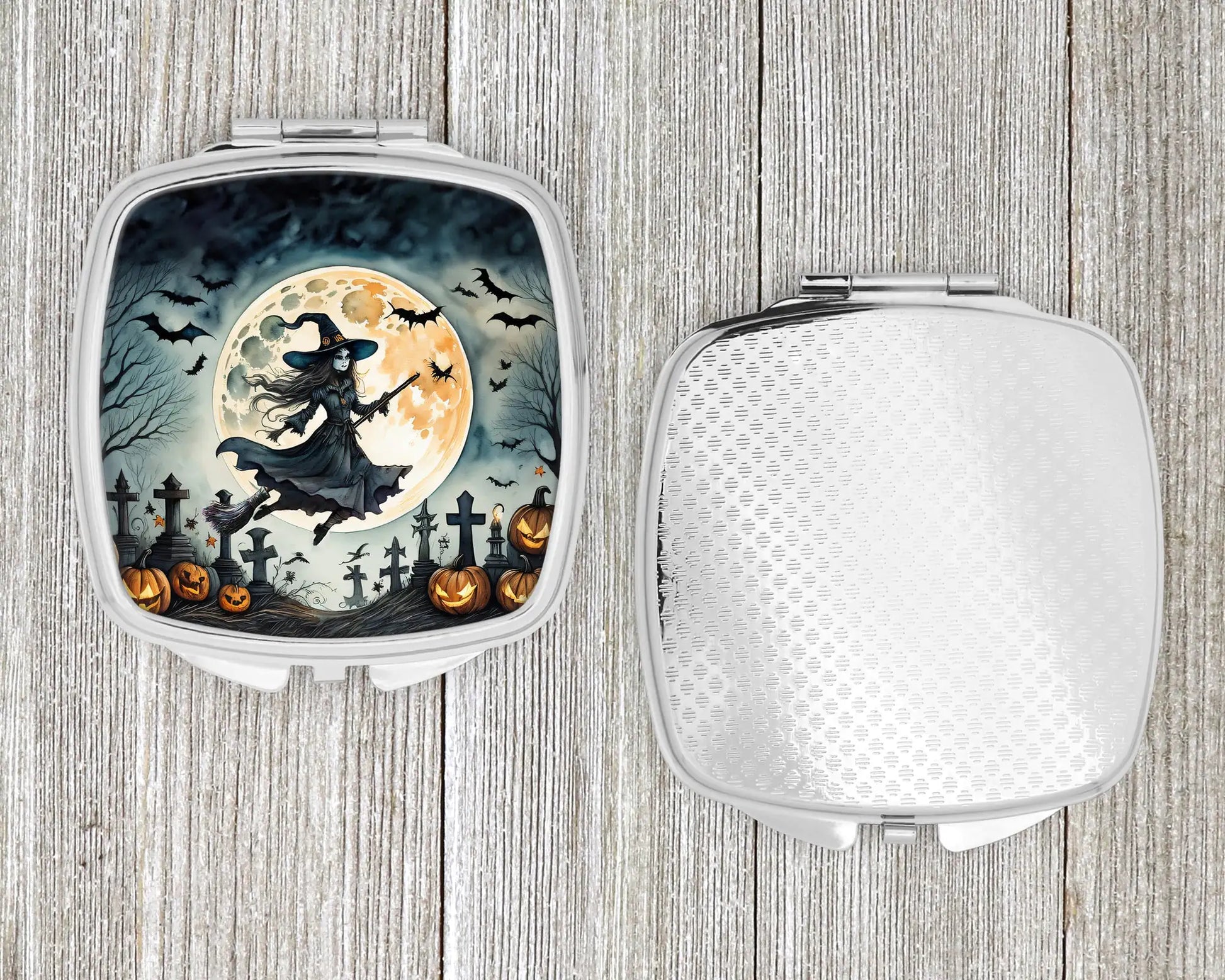 Celebrate Halloween with this Halloween Compact Mirror. Introducing our Square Compact Mirror, a blend of elegance, functionality, and compactness, perfect for on-the-go touch-ups. This Silvertone metal mirror, with dimensions of 2.75 inches x 3 inches x .3 inches, fits effortlessly into your purse, handbag, or pocket, ensuring that you can check your appearance anytime, anywhere. Our compact mirror stands out with its eye-catching artwork on the front, adding a dash of style to this practical accessory. It is more than just a mirror; it's a statement piece that reflects your personality and aesthetic. When opened, this compact reveals two mirrors inside, doubling your perspective for precise touch-ups. The Silvertone metal construction ensures durability while maintaining a lightweight feel, making it an ideal everyday carry item. Whether you're rushing to a meeting, prepping for a dinner date, or just need a quick check on your look, our Square Compact Mirror is your reliable companion. Experience the perfect blend of style and practicality with this must-have accessory.