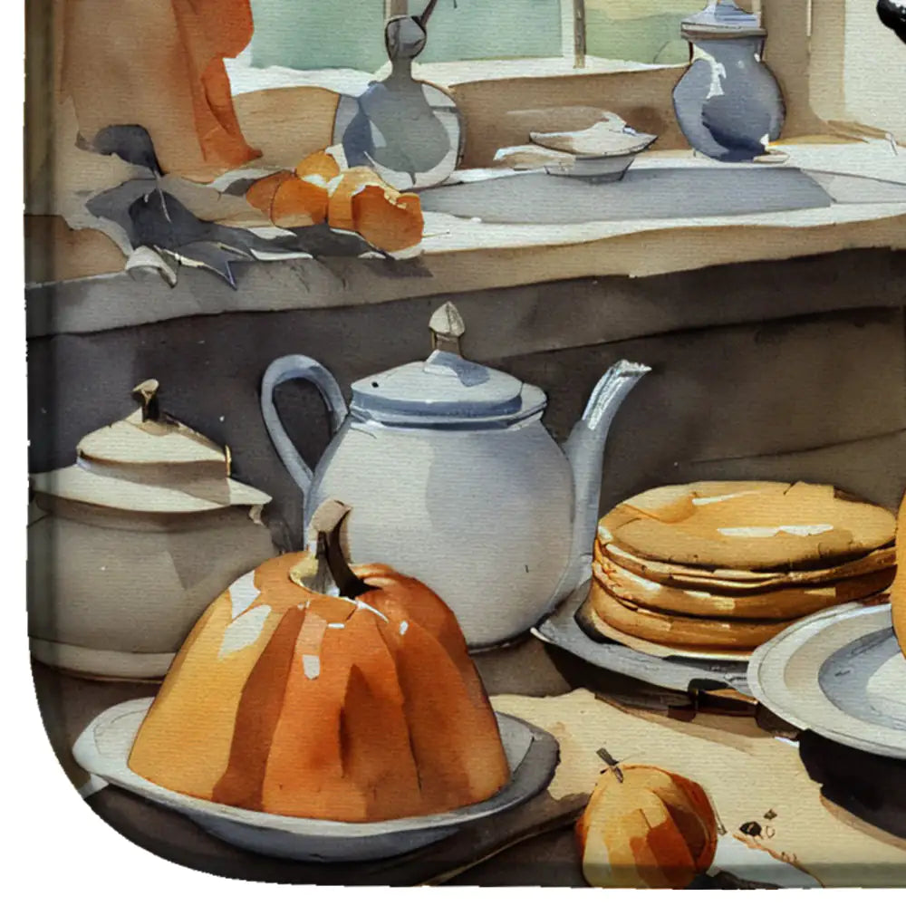 Dish Drying Mat featuring breed specific German Shepherd artwork. Celebrate Halloween with this Halloween Dish Drying Mat. Say goodbye to messy countertops and soggy dish towels with our innovative dish drying mat. Our high-quality dish drying pad is designed to keep your countertops dry while offering a stylish and efficient solution. Whether you're air drying dishes, glasses, stemware, silverware, pots, pans, bottles, or even fruits and vegetables, our dish mat is the perfect choice. The 14 inches x 22 inches size fits most counters and dish drying racks, and the non-slip design ensures stability. Made with water-absorbent polyester and a polyurethane foam insert, our dish drying mat is not only functional but also durable. It's machine washable and printed in the USA for long-lasting use. The beautiful artwork adds flair to your kitchen decor, making it a perfect housewarming gift or present for any occasion. Upgrade your kitchen experience with our absorbent and versatile dish drying mat.
