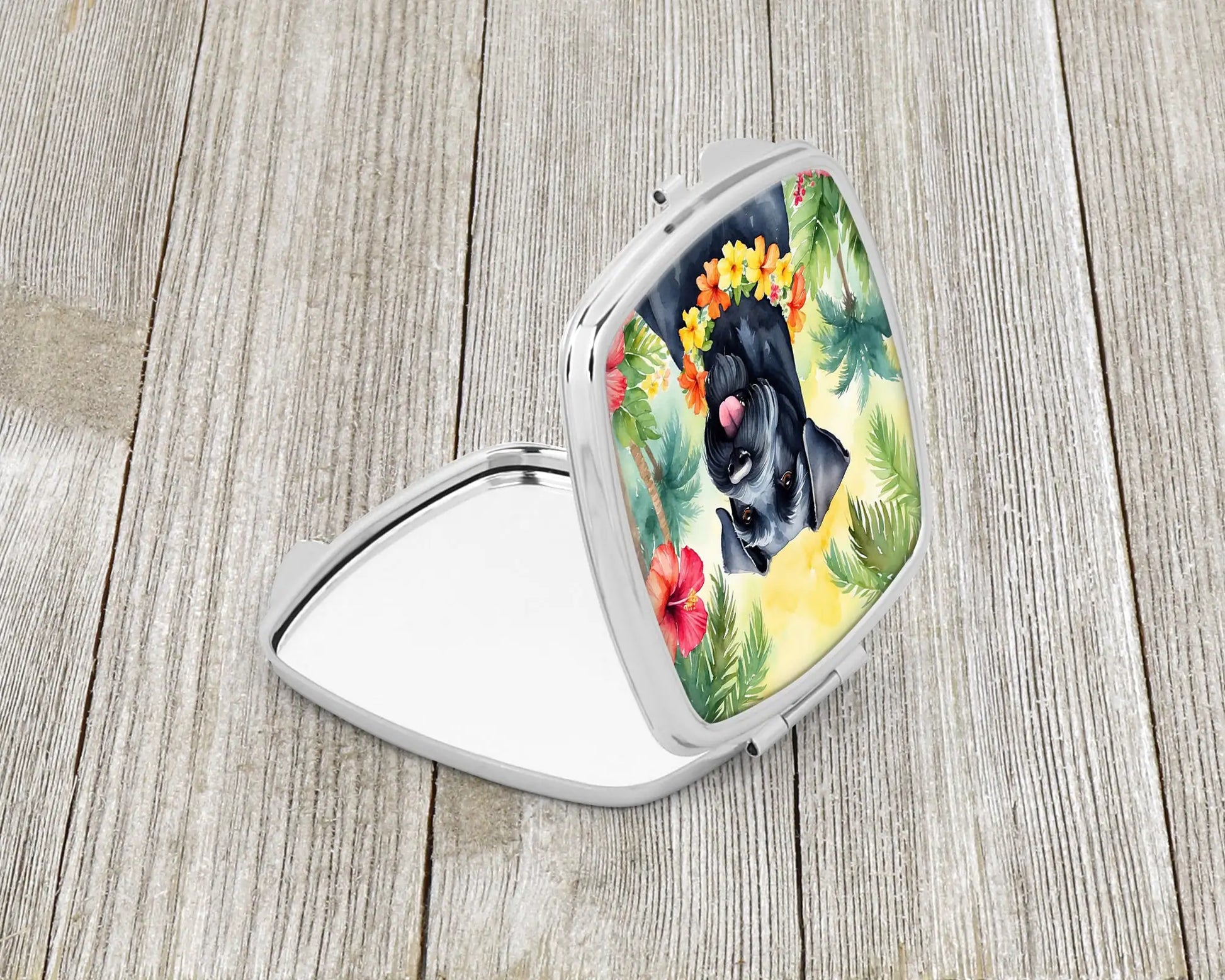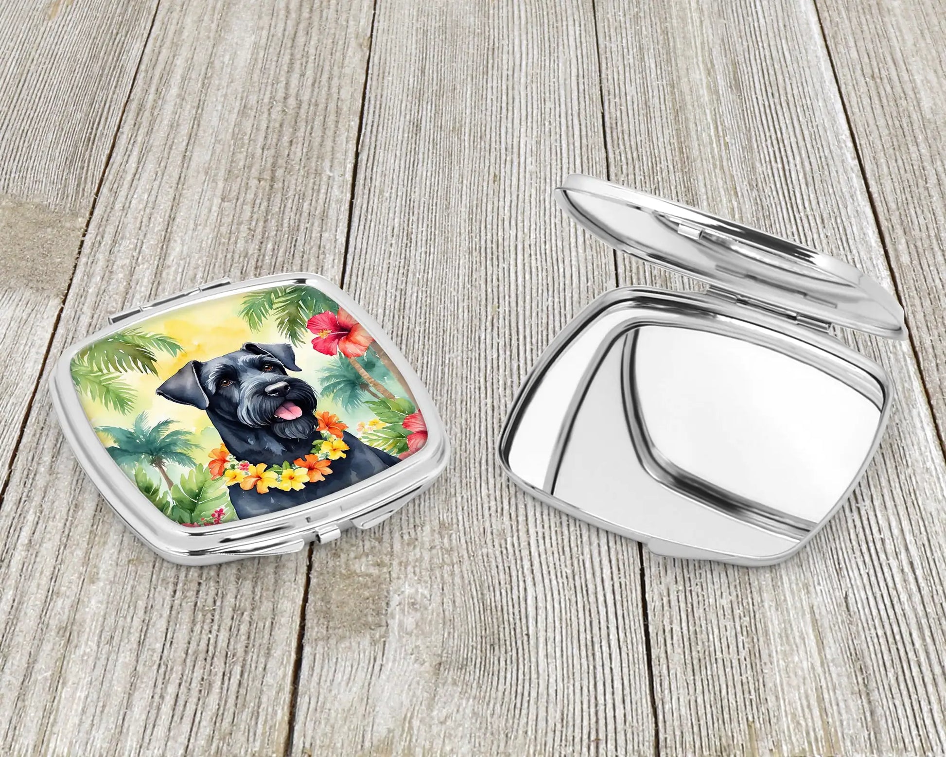 Compact Mirror featuring breed specific Giant Schnauzer artwork. Introducing our Square Compact Mirror, a blend of elegance, functionality, and compactness, perfect for on-the-go touch-ups. This Silvertone metal mirror, with dimensions of 2.75 inches x 3 inches x .3 inches, fits effortlessly into your purse, handbag, or pocket, ensuring that you can check your appearance anytime, anywhere. Our compact mirror stands out with its eye-catching artwork on the front, adding a dash of style to this practical accessory. It is more than just a mirror; it's a statement piece that reflects your personality and aesthetic. When opened, this compact reveals two mirrors inside, doubling your perspective for precise touch-ups. The Silvertone metal construction ensures durability while maintaining a lightweight feel, making it an ideal everyday carry item. Whether you're rushing to a meeting, prepping for a dinner date, or just need a quick check on your look, our Square Compact Mirror is your reliable companion. Experience the perfect blend of style and practicality with this must-have accessory.