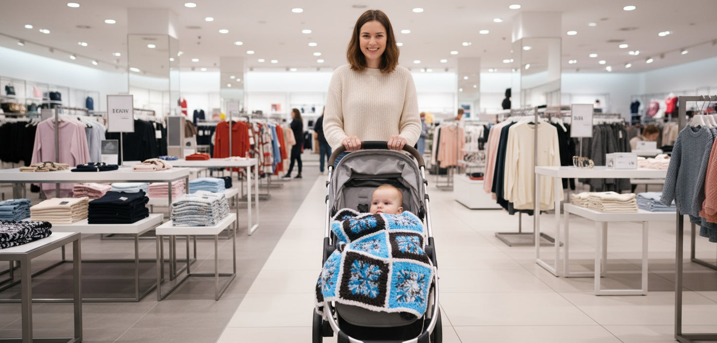 Granny Square Baby Blanket handmade of Browns and Blues for boys and girls