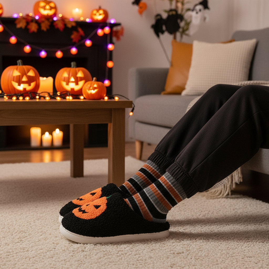 Each pack contains one pair of slippers, making them a great gift for yourself or your loved ones. Get ready to cozy up in these Halloween Pumpkin Cartoon Slippers and add a touch of spookiness to your indoor footwear collection.