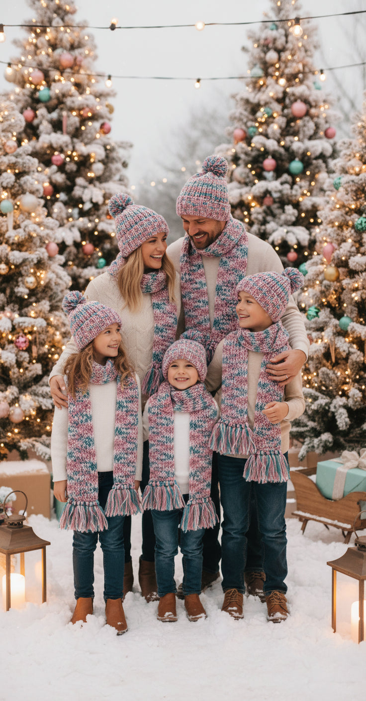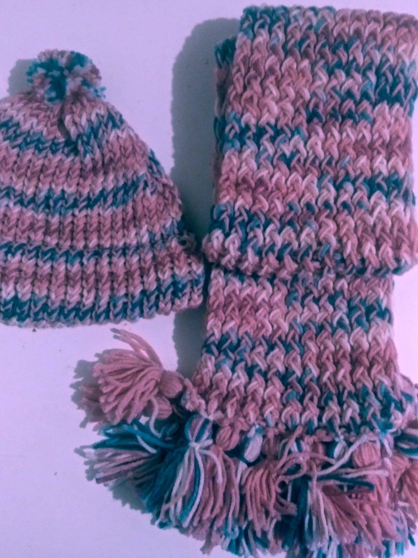 Handmade Beanie n Scarves Sets of Teal and Multi Colors