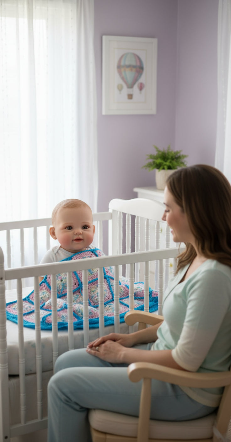 Not only is this blanket functional, but it also adds a touch of style to any nursery. It can be used as a decorative throw, adding a charming and handmade touch to the room. The brand of the blanket is Handmade, ensuring that each piece is one-of-a-kind and made with love.