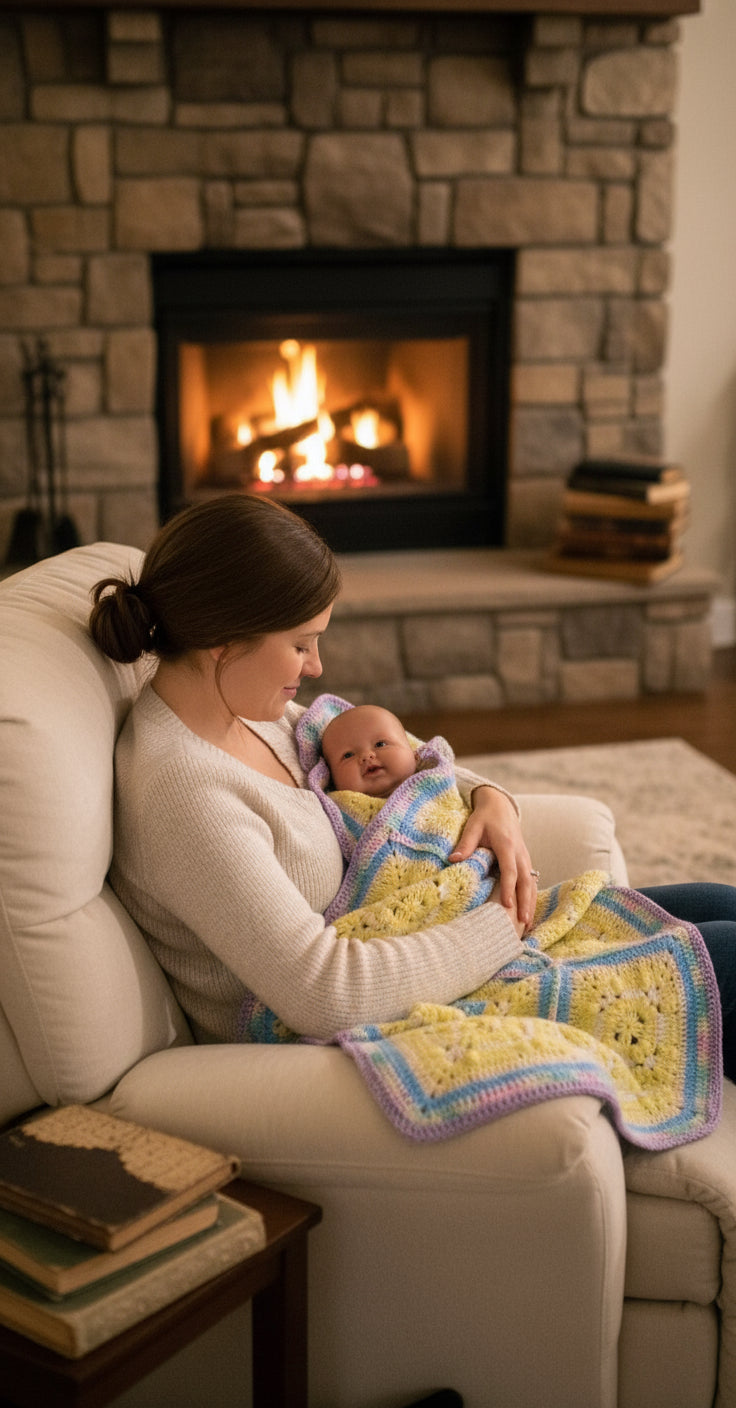 This handmade blanket was made with love and attention to detail. Each stitch was carefully crafted to create a unique and eye-catching pattern. The size of 36x36 makes it perfect for a variety of uses, from swaddling your baby to using it as a playmat.