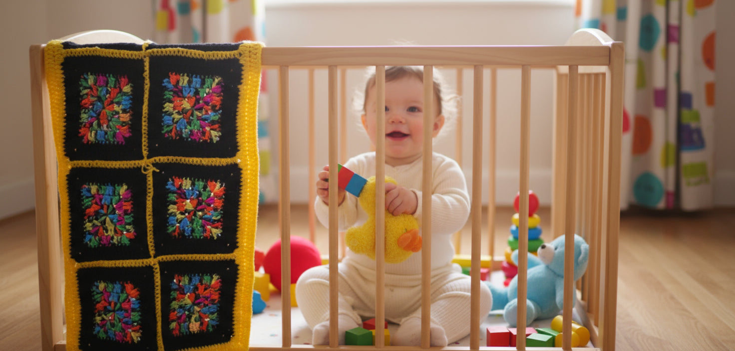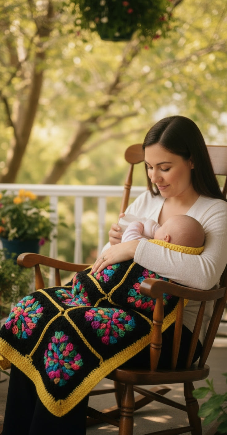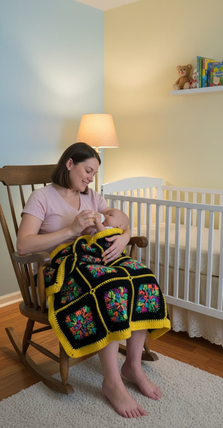 This beautiful handmade blanket features a stunning patchwork design using a variety of vibrant colors such as black and yellow. The blanket is crafted using high-quality crochet and knit materials, ensuring that it is both durable and comfortable to use. The blanket is perfect for use in a nursery or as a decorative throw for any room in your home.