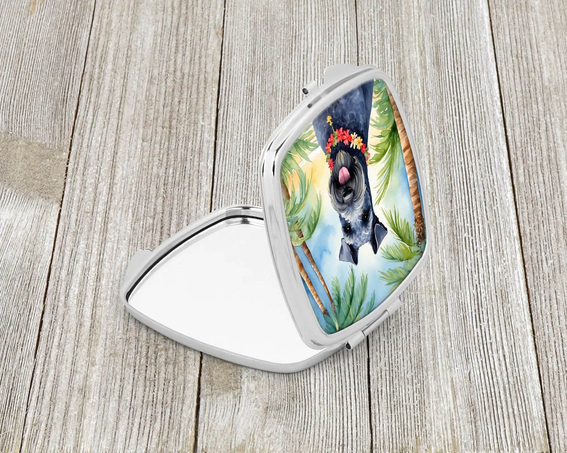 Compact Mirror featuring breed specific Kerry Blue Terrier artwork. Introducing our Square Compact Mirror, a blend of elegance, functionality, and compactness, perfect for on-the-go touch-ups. This Silvertone metal mirror, with dimensions of 2.75 inches x 3 inches x .3 inches, fits effortlessly into your purse, handbag, or pocket, ensuring that you can check your appearance anytime, anywhere. Our compact mirror stands out with its eye-catching artwork on the front, adding a dash of style to this practical accessory. It is more than just a mirror; it's a statement piece that reflects your personality and aesthetic. When opened, this compact reveals two mirrors inside, doubling your perspective for precise touch-ups. The Silvertone metal construction ensures durability while maintaining a lightweight feel, making it an ideal everyday carry item. Whether you're rushing to a meeting, prepping for a dinner date, or just need a quick check on your look, our Square Compact Mirror is your reliable companion. Experience the perfect blend of style and practicality with this must-have accessory.