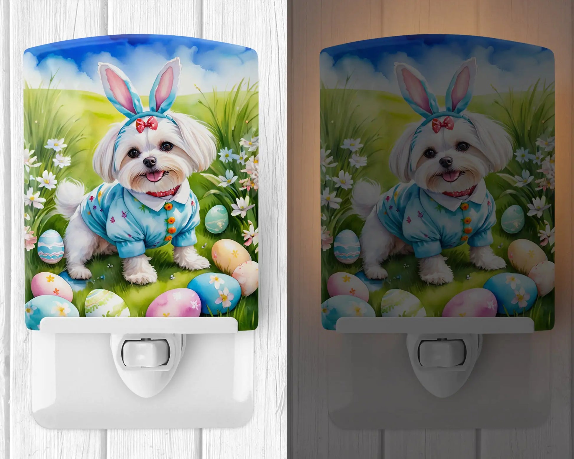 Ceramic Night Light featuring breed specific Maltese artwork. Celebrate Easter with this Easter Night Light. Introduce a splash of artistic flair and subtle illumination to your space with the Decorative Ceramic Night Light from Caroline's Treasures. Perfect for any room, this night light seamlessly blends functionality with an aesthetic appeal, offering a stylish solution to brighten up dark corners of your home or office. Boasting a six-inch high by four-inch wide ceramic tile at the front, it showcases vivid, full-color artwork from distinguished artists, transforming a simple utility into a vibrant art piece. The artwork is securely encased in a robust metal holder, ensuring durability and longevity. Two screws are provided to firmly affix the tile into the holder. The holder extends three inches deep, housing an included bulb that emits a soft, welcoming glow. This product meets all safety standards, as evidenced by its UL approval. Proudly made in the United States from imported components, this Decorative Ceramic Night Light is not just a functional device; it's a statement piece that enhances the ambiance of your surroundings.