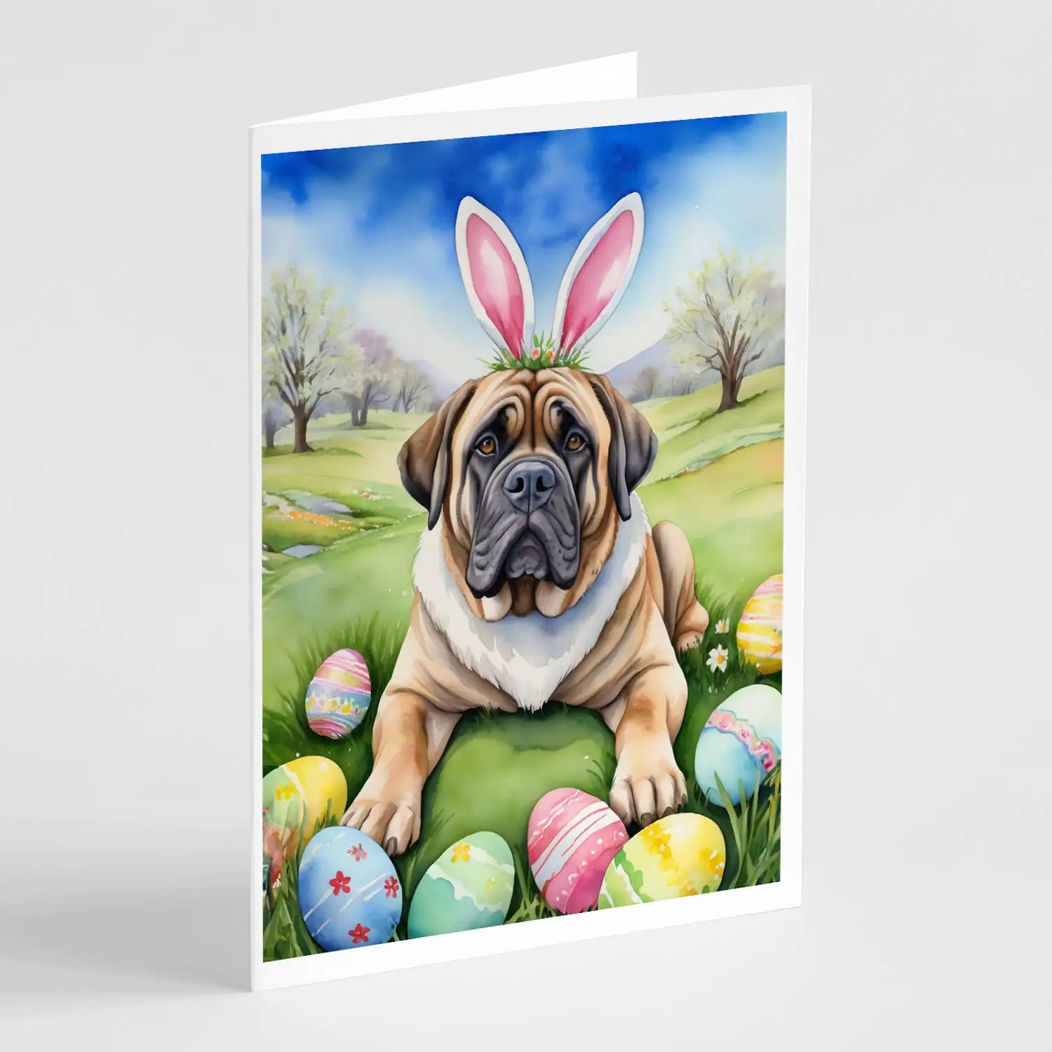 Greeting Cards Pack of 8 featuring breed specific Mastiff artwork. Celebrate Easter with this Easter . Celebrate special moments with Caroline's Treasures Printed Greeting Card Pack. This pack includes eight beautifully folded 5x7 cards, accompanied by eight matching white envelopes. With blank interiors, these cards provide ample space for your personalized messages and heartfelt holiday greetings. Each card features captivating full-color artwork, meticulously printed in our facility on high-quality 80 lb cover stock or 216 GSM. The super smooth finish of the white cards enhances the visual impact of the artwork, creating a truly stunning presentation. Designed by our talented in-house artists or licensed artists, the artwork on these cards showcases their creativity and attention to detail. From vibrant illustrations to captivating designs, each card tells its own unique story. Whether it's for birthdays, anniversaries, holidays, or any special occasion, Caroline's Treasures Greeting Card Pack is the perfect way to convey your heartfelt sentiments. Share joy, love, and warm wishes with these exquisite cards and make every moment unforgettable.