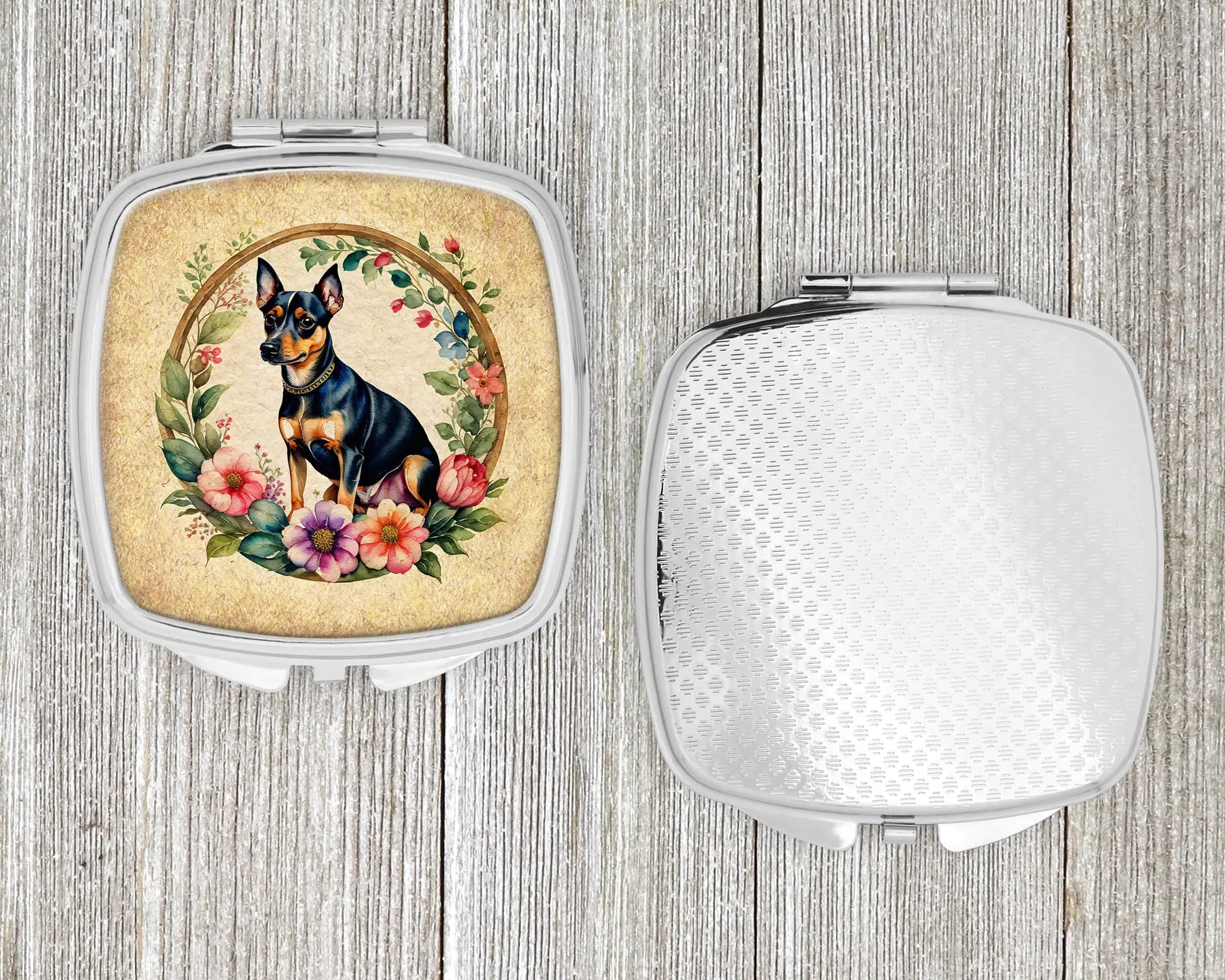 Compact Mirror featuring breed specific Miniature Pinscher artwork. Introducing our Square Compact Mirror, a blend of elegance, functionality, and compactness, perfect for on-the-go touch-ups. This Silvertone metal mirror, with dimensions of 2.75 inches x 3 inches x .3 inches, fits effortlessly into your purse, handbag, or pocket, ensuring that you can check your appearance anytime, anywhere. Our compact mirror stands out with its eye-catching artwork on the front, adding a dash of style to this practical accessory. It is more than just a mirror; it's a statement piece that reflects your personality and aesthetic. When opened, this compact reveals two mirrors inside, doubling your perspective for precise touch-ups. The Silvertone metal construction ensures durability while maintaining a lightweight feel, making it an ideal everyday carry item. Whether you're rushing to a meeting, prepping for a dinner date, or just need a quick check on your look, our Square Compact Mirror is your reliable companion. Experience the perfect blend of style and practicality with this must-have accessory.