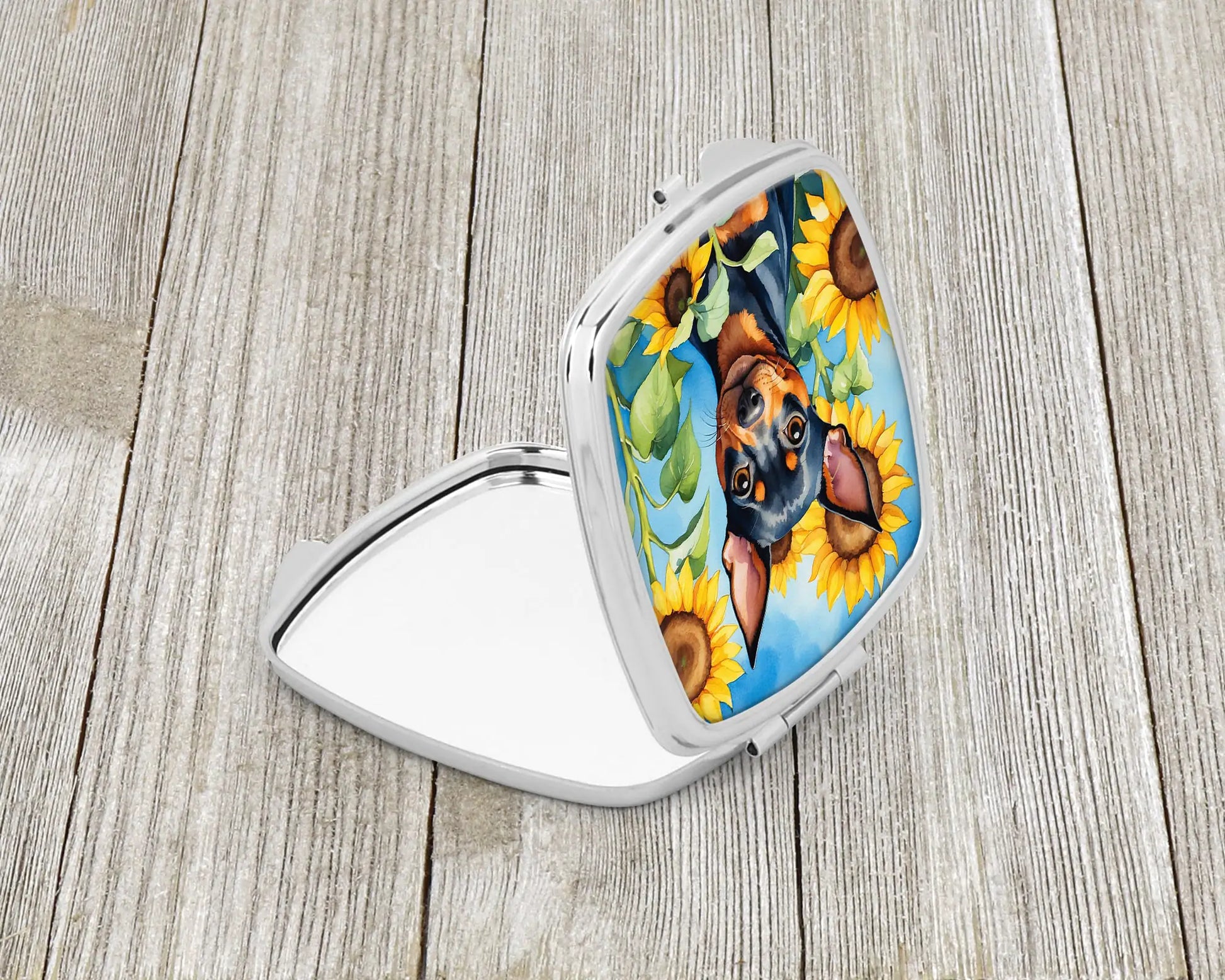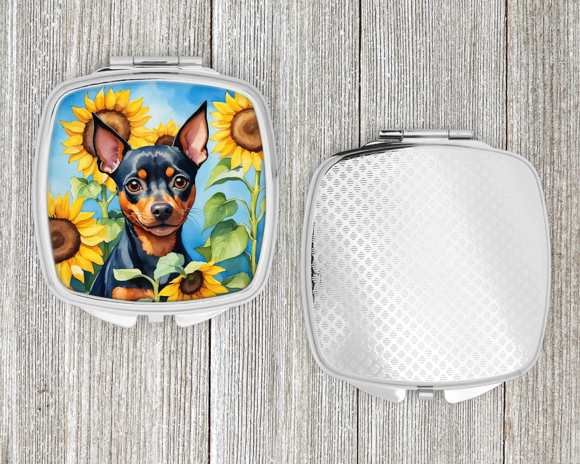 Compact Mirror featuring breed specific Miniature Pinscher artwork. Introducing our Square Compact Mirror, a blend of elegance, functionality, and compactness, perfect for on-the-go touch-ups. This Silvertone metal mirror, with dimensions of 2.75 inches x 3 inches x .3 inches, fits effortlessly into your purse, handbag, or pocket, ensuring that you can check your appearance anytime, anywhere. Our compact mirror stands out with its eye-catching artwork on the front, adding a dash of style to this practical accessory. It is more than just a mirror; it's a statement piece that reflects your personality and aesthetic. When opened, this compact reveals two mirrors inside, doubling your perspective for precise touch-ups. The Silvertone metal construction ensures durability while maintaining a lightweight feel, making it an ideal everyday carry item. Whether you're rushing to a meeting, prepping for a dinner date, or just need a quick check on your look, our Square Compact Mirror is your reliable companion. Experience the perfect blend of style and practicality with this must-have accessory.