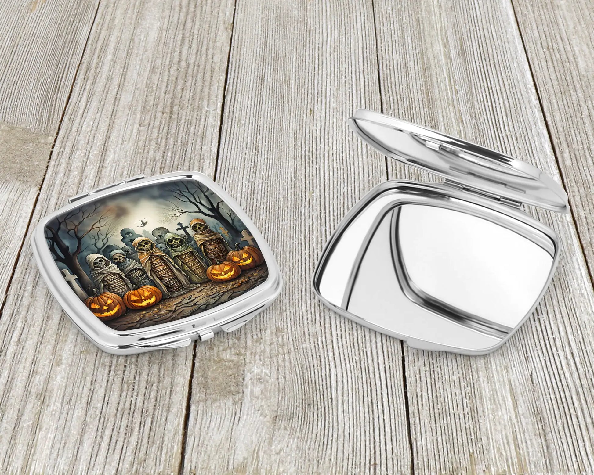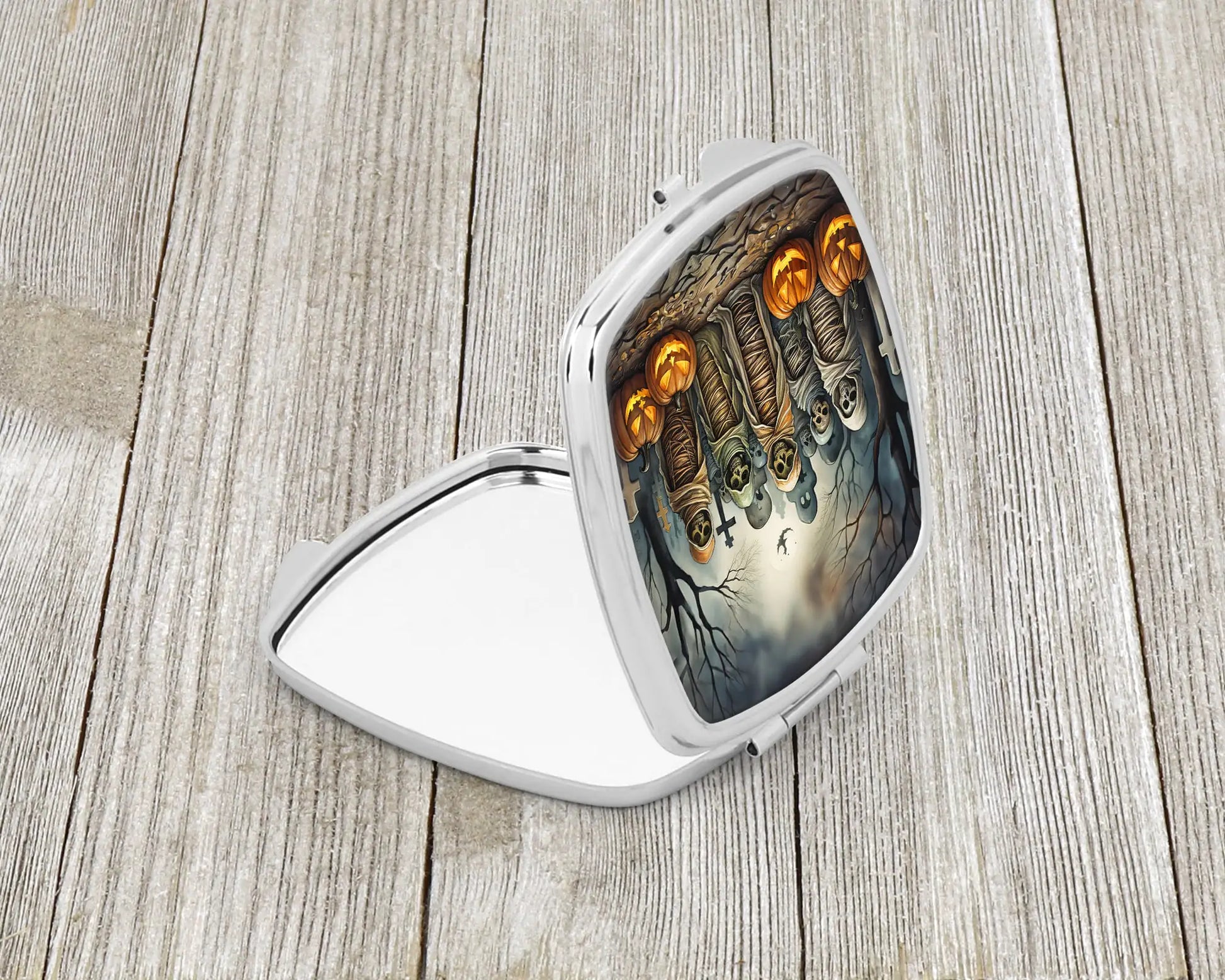 Celebrate Halloween with this Halloween Compact Mirror. Introducing our Square Compact Mirror, a blend of elegance, functionality, and compactness, perfect for on-the-go touch-ups. This Silvertone metal mirror, with dimensions of 2.75 inches x 3 inches x .3 inches, fits effortlessly into your purse, handbag, or pocket, ensuring that you can check your appearance anytime, anywhere. Our compact mirror stands out with its eye-catching artwork on the front, adding a dash of style to this practical accessory. It is more than just a mirror; it's a statement piece that reflects your personality and aesthetic. When opened, this compact reveals two mirrors inside, doubling your perspective for precise touch-ups. The Silvertone metal construction ensures durability while maintaining a lightweight feel, making it an ideal everyday carry item. Whether you're rushing to a meeting, prepping for a dinner date, or just need a quick check on your look, our Square Compact Mirror is your reliable companion. Experience the perfect blend of style and practicality with this must-have accessory.