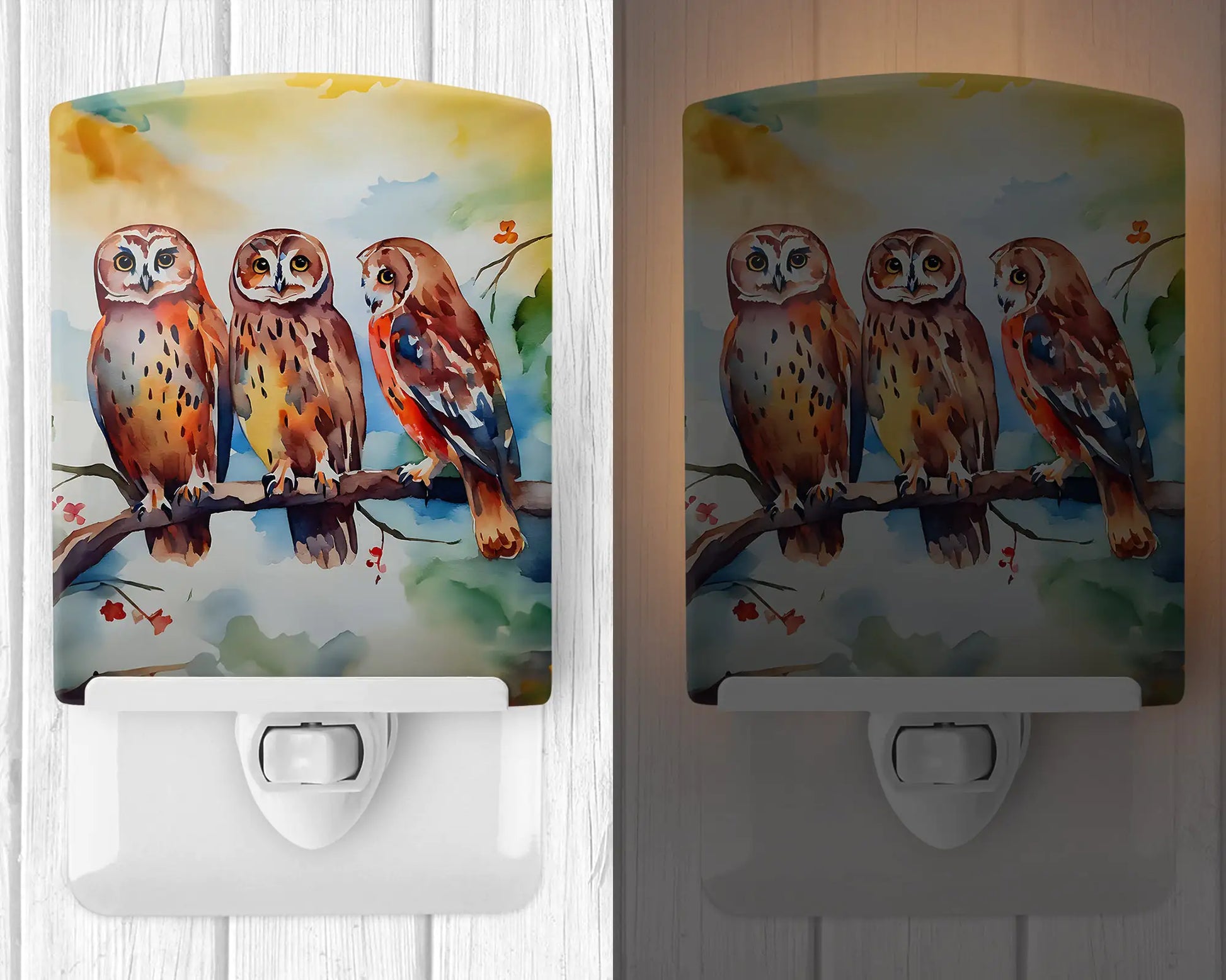Ceramic Night Light featuring breed specific Owls artwork. Introduce a splash of artistic flair and subtle illumination to your space with the Decorative Ceramic Night Light from Caroline's Treasures. Perfect for any room, this night light seamlessly blends functionality with an aesthetic appeal, offering a stylish solution to brighten up dark corners of your home or office. Boasting a six-inch high by four-inch wide ceramic tile at the front, it showcases vivid, full-color artwork from distinguished artists, transforming a simple utility into a vibrant art piece. The artwork is securely encased in a robust metal holder, ensuring durability and longevity. Two screws are provided to firmly affix the tile into the holder. The holder extends three inches deep, housing an included bulb that emits a soft, welcoming glow. This product meets all safety standards, as evidenced by its UL approval. Proudly made in the United States from imported components, this Decorative Ceramic Night Light is not just a functional device; it's a statement piece that enhances the ambiance of your surroundings.