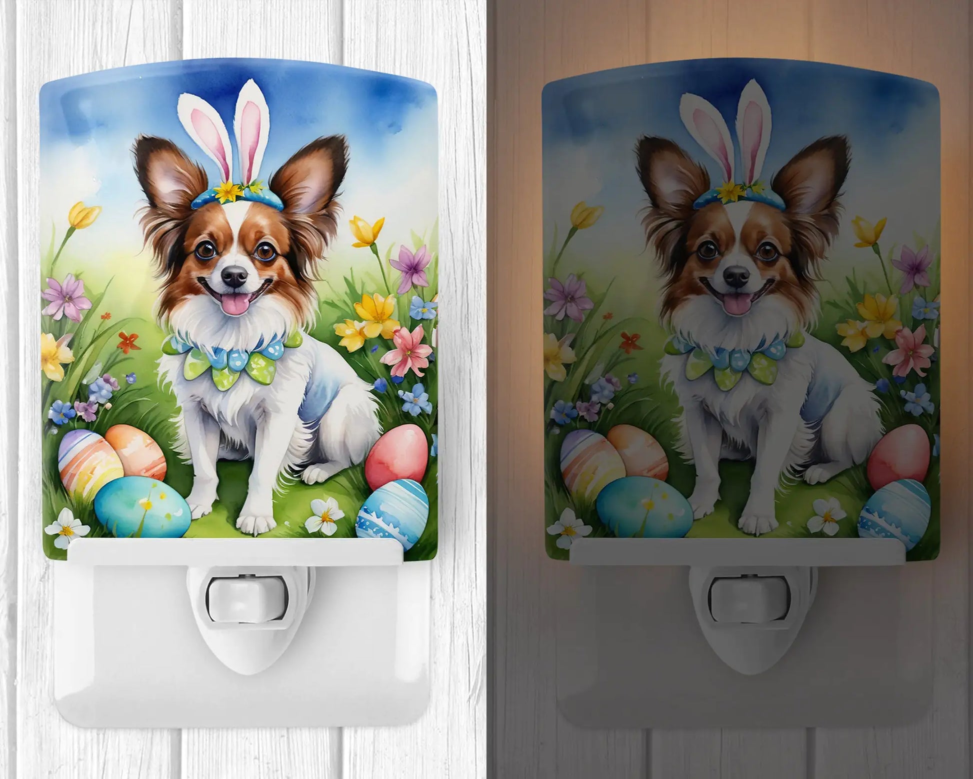 Ceramic Night Light featuring breed specific Papillon artwork. Celebrate Easter with this Easter Night Light. Introduce a splash of artistic flair and subtle illumination to your space with the Decorative Ceramic Night Light from Caroline's Treasures. Perfect for any room, this night light seamlessly blends functionality with an aesthetic appeal, offering a stylish solution to brighten up dark corners of your home or office. Boasting a six-inch high by four-inch wide ceramic tile at the front, it showcases vivid, full-color artwork from distinguished artists, transforming a simple utility into a vibrant art piece. The artwork is securely encased in a robust metal holder, ensuring durability and longevity. Two screws are provided to firmly affix the tile into the holder. The holder extends three inches deep, housing an included bulb that emits a soft, welcoming glow. This product meets all safety standards, as evidenced by its UL approval. Proudly made in the United States from imported components, this Decorative Ceramic Night Light is not just a functional device; it's a statement piece that enhances the ambiance of your surroundings.