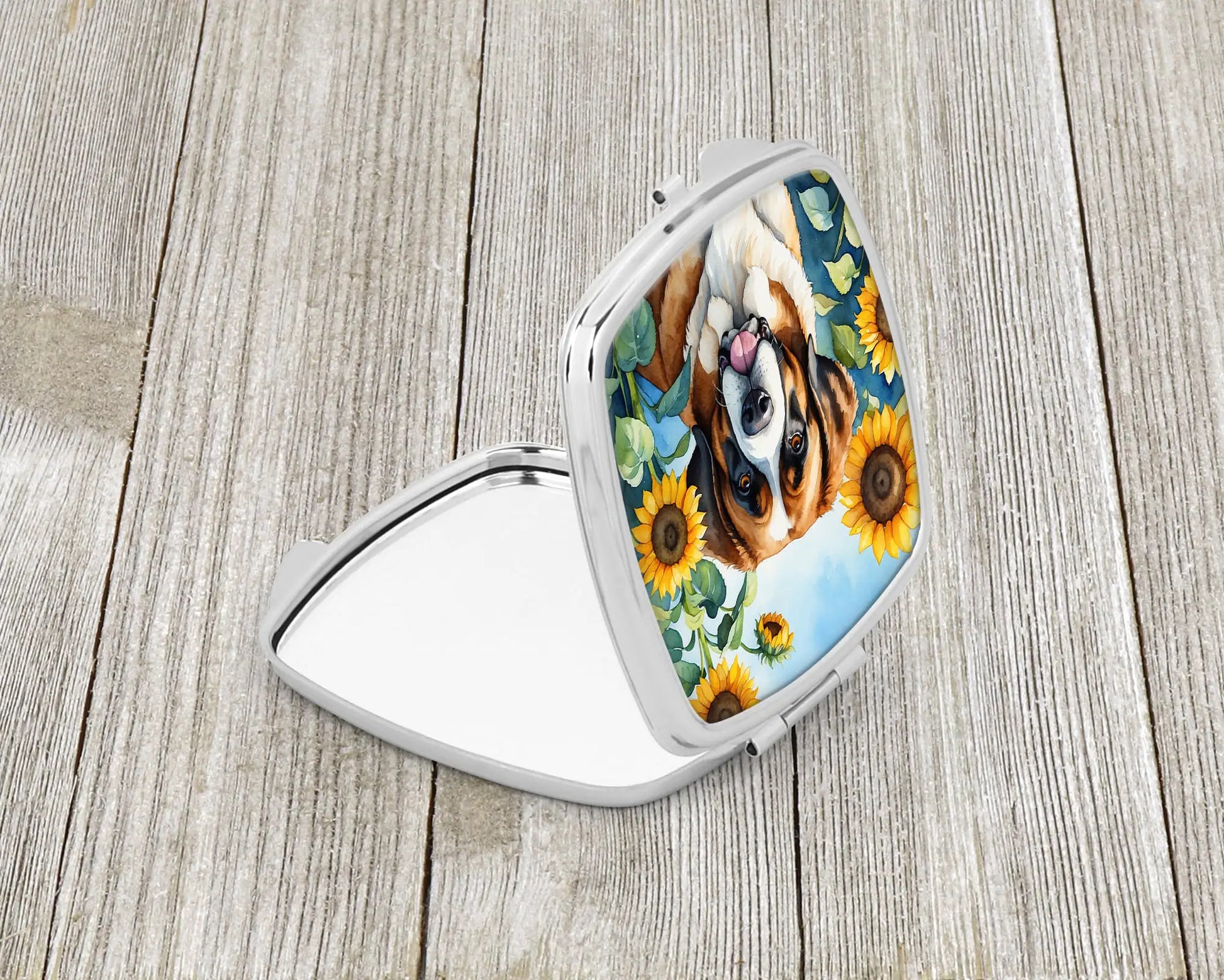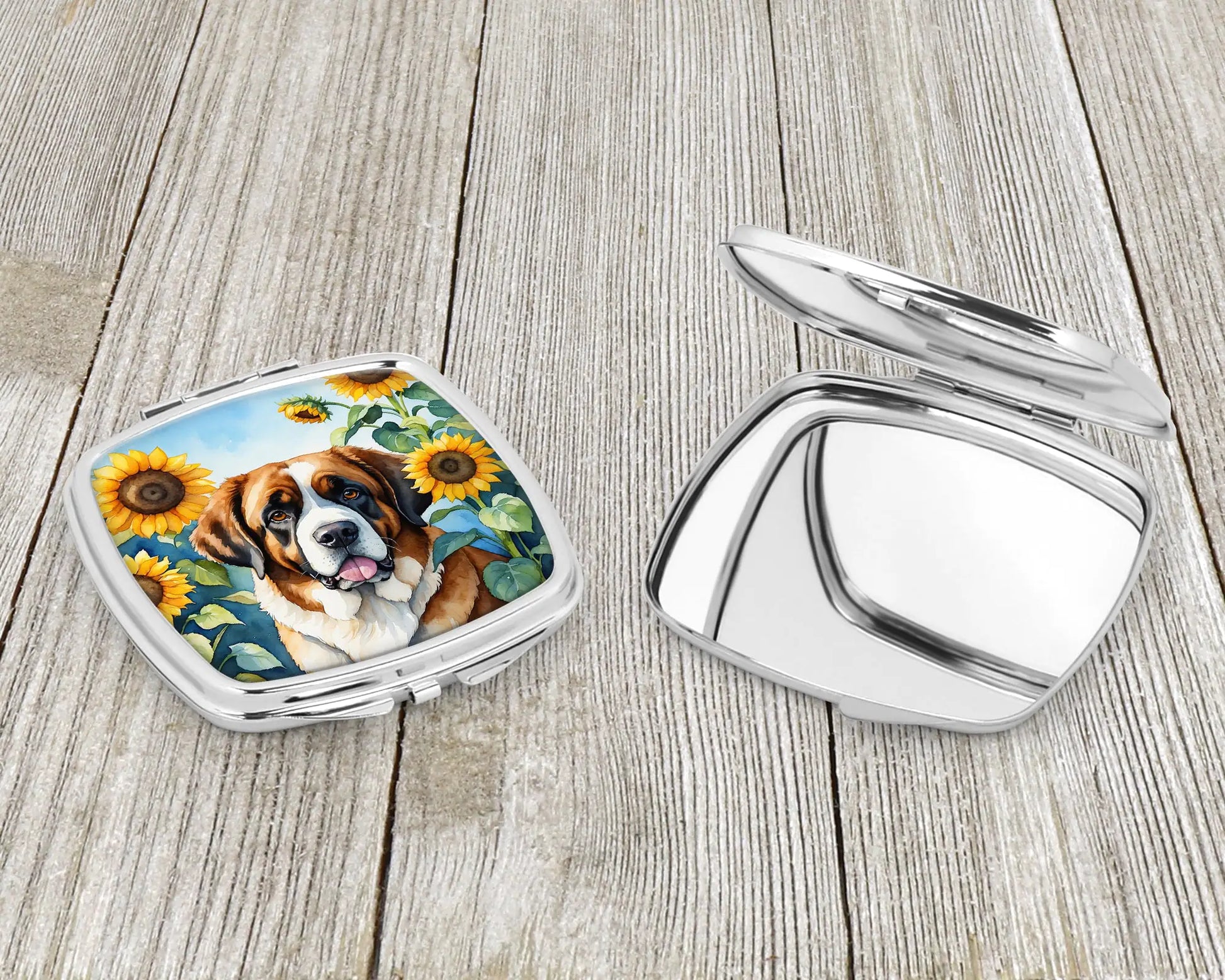 Compact Mirror featuring breed specific Saint Bernard artwork. Introducing our Square Compact Mirror, a blend of elegance, functionality, and compactness, perfect for on-the-go touch-ups. This Silvertone metal mirror, with dimensions of 2.75 inches x 3 inches x .3 inches, fits effortlessly into your purse, handbag, or pocket, ensuring that you can check your appearance anytime, anywhere. Our compact mirror stands out with its eye-catching artwork on the front, adding a dash of style to this practical accessory. It is more than just a mirror; it's a statement piece that reflects your personality and aesthetic. When opened, this compact reveals two mirrors inside, doubling your perspective for precise touch-ups. The Silvertone metal construction ensures durability while maintaining a lightweight feel, making it an ideal everyday carry item. Whether you're rushing to a meeting, prepping for a dinner date, or just need a quick check on your look, our Square Compact Mirror is your reliable companion. Experience the perfect blend of style and practicality with this must-have accessory.