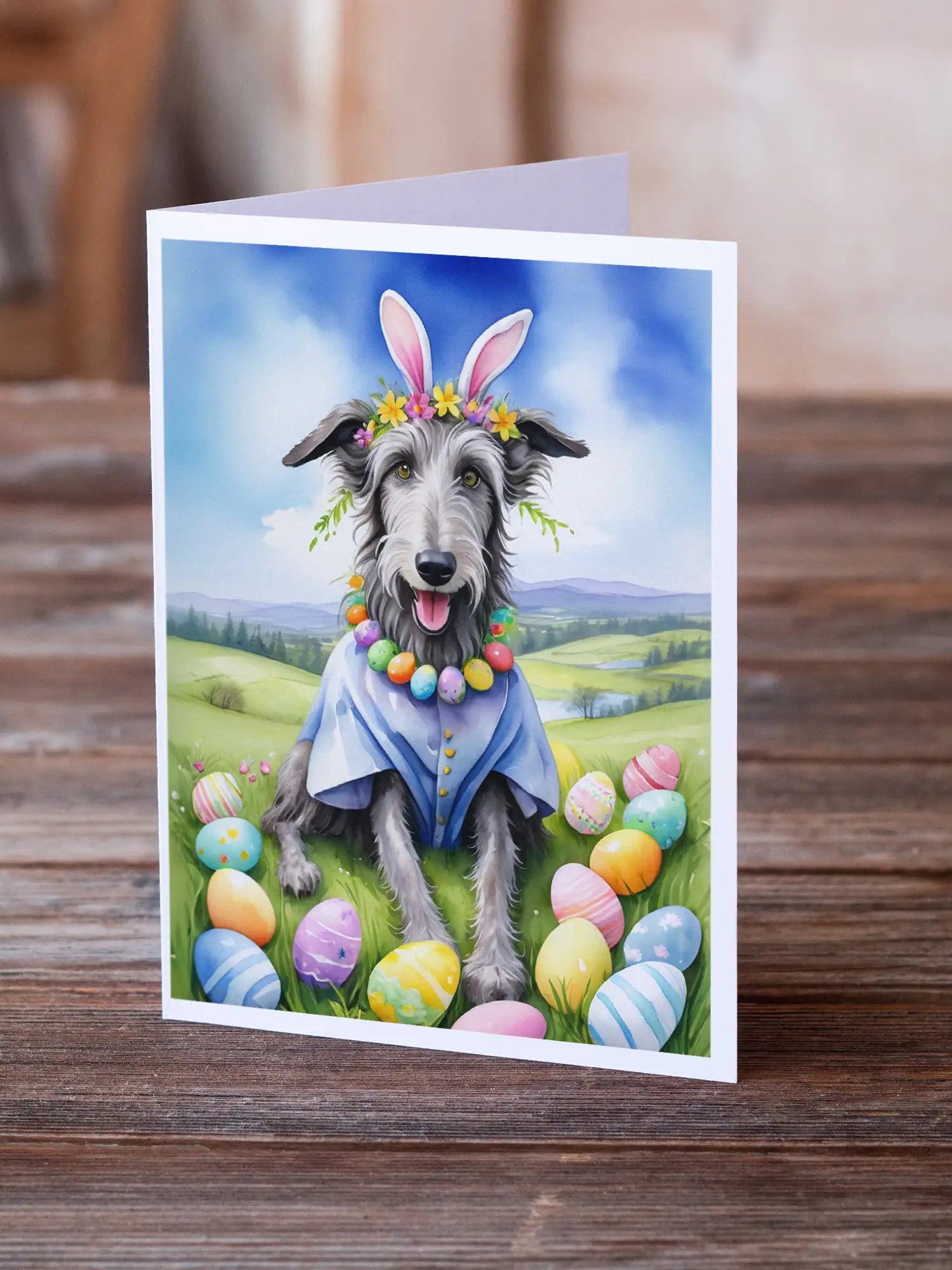 Greeting Cards Pack of 8 featuring breed specific Scottish Deerhound artwork. Celebrate Easter with this Easter . Celebrate special moments with Caroline's Treasures Printed Greeting Card Pack. This pack includes eight beautifully folded 5x7 cards, accompanied by eight matching white envelopes. With blank interiors, these cards provide ample space for your personalized messages and heartfelt holiday greetings. Each card features captivating full-color artwork, meticulously printed in our facility on high-quality 80 lb cover stock or 216 GSM. The super smooth finish of the white cards enhances the visual impact of the artwork, creating a truly stunning presentation. Designed by our talented in-house artists or licensed artists, the artwork on these cards showcases their creativity and attention to detail. From vibrant illustrations to captivating designs, each card tells its own unique story. Whether it's for birthdays, anniversaries, holidays, or any special occasion, Caroline's Treasures Greeting Card Pack is the perfect way to convey your heartfelt sentiments. Share joy, love, and warm wishes with these exquisite cards and make every moment unforgettable.