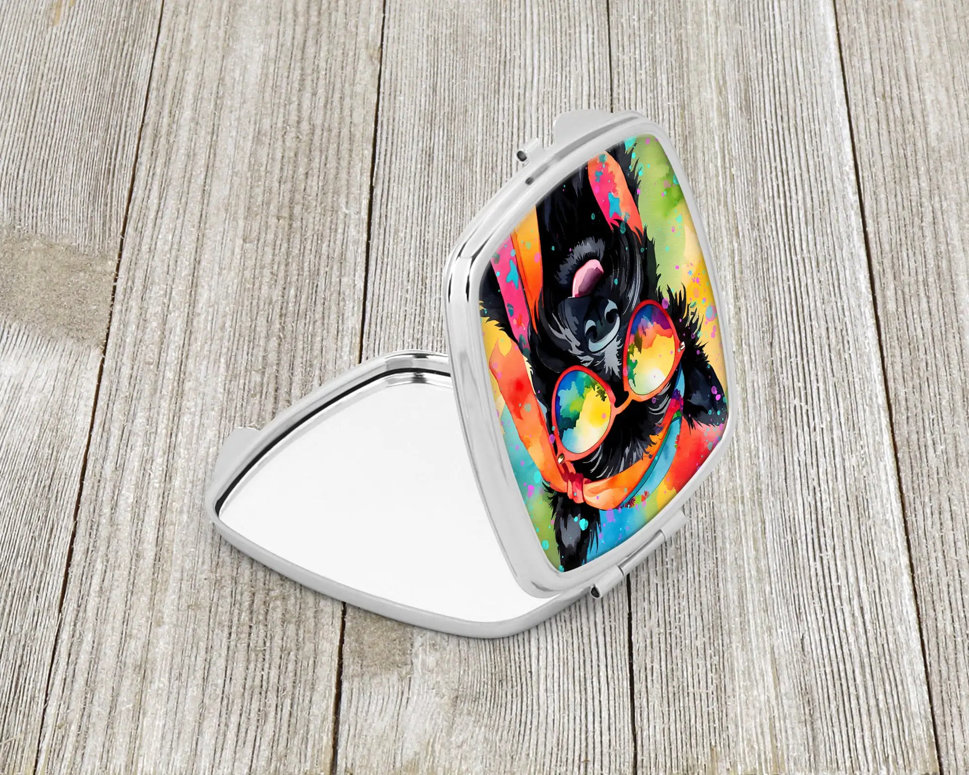 Compact Mirror featuring breed specific Scottish Terrier artwork. Introducing our Square Compact Mirror, a blend of elegance, functionality, and compactness, perfect for on-the-go touch-ups. This Silvertone metal mirror, with dimensions of 2.75 inches x 3 inches x .3 inches, fits effortlessly into your purse, handbag, or pocket, ensuring that you can check your appearance anytime, anywhere. Our compact mirror stands out with its eye-catching artwork on the front, adding a dash of style to this practical accessory. It is more than just a mirror; it's a statement piece that reflects your personality and aesthetic. When opened, this compact reveals two mirrors inside, doubling your perspective for precise touch-ups. The Silvertone metal construction ensures durability while maintaining a lightweight feel, making it an ideal everyday carry item. Whether you're rushing to a meeting, prepping for a dinner date, or just need a quick check on your look, our Square Compact Mirror is your reliable companion. Experience the perfect blend of style and practicality with this must-have accessory.