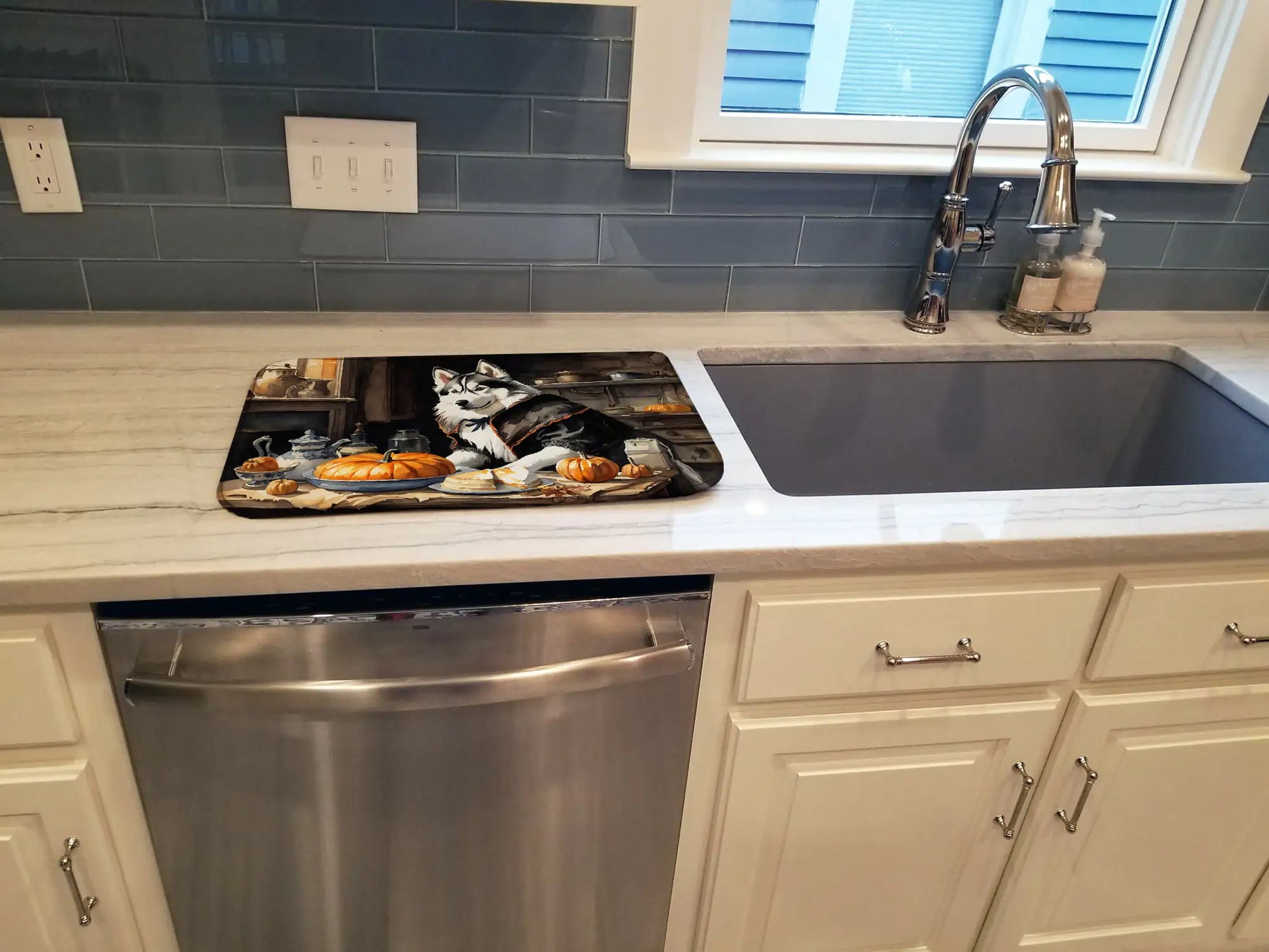 Dish Drying Mat featuring breed specific Siberian Husky artwork. Celebrate Halloween with this Halloween Dish Drying Mat. Say goodbye to messy countertops and soggy dish towels with our innovative dish drying mat. Our high-quality dish drying pad is designed to keep your countertops dry while offering a stylish and efficient solution. Whether you're air drying dishes, glasses, stemware, silverware, pots, pans, bottles, or even fruits and vegetables, our dish mat is the perfect choice. The 14 inches x 22 inches size fits most counters and dish drying racks, and the non-slip design ensures stability. Made with water-absorbent polyester and a polyurethane foam insert, our dish drying mat is not only functional but also durable. It's machine washable and printed in the USA for long-lasting use. The beautiful artwork adds flair to your kitchen decor, making it a perfect housewarming gift or present for any occasion. Upgrade your kitchen experience with our absorbent and versatile dish drying mat.