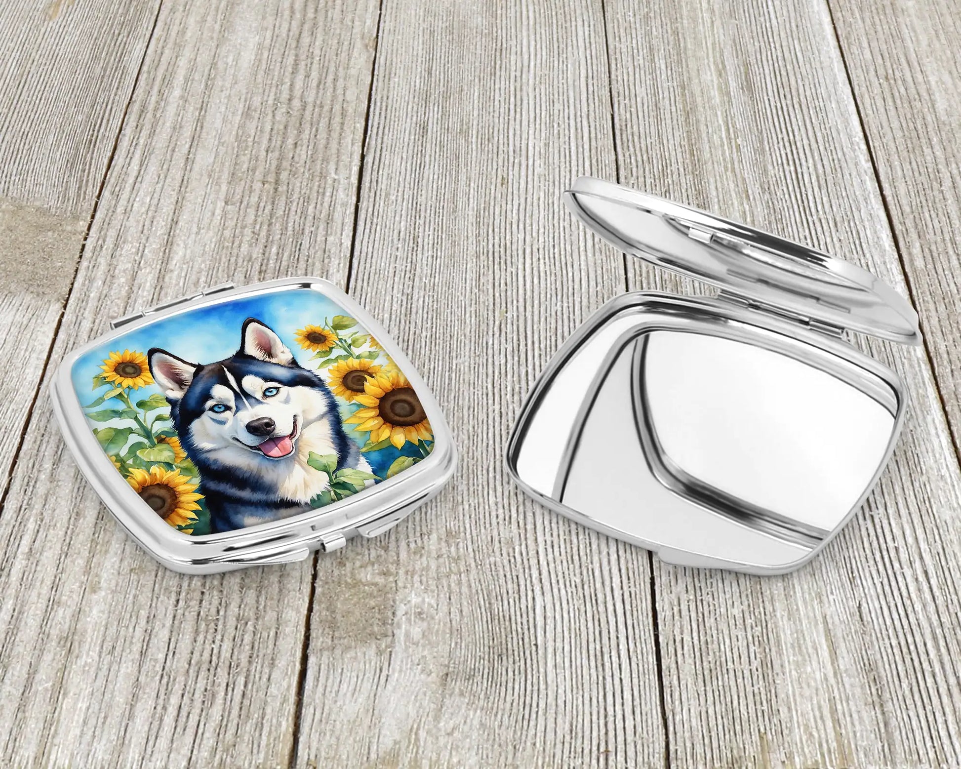 Compact Mirror featuring breed specific Siberian Husky artwork. Introducing our Square Compact Mirror, a blend of elegance, functionality, and compactness, perfect for on-the-go touch-ups. This Silvertone metal mirror, with dimensions of 2.75 inches x 3 inches x .3 inches, fits effortlessly into your purse, handbag, or pocket, ensuring that you can check your appearance anytime, anywhere. Our compact mirror stands out with its eye-catching artwork on the front, adding a dash of style to this practical accessory. It is more than just a mirror; it's a statement piece that reflects your personality and aesthetic. When opened, this compact reveals two mirrors inside, doubling your perspective for precise touch-ups. The Silvertone metal construction ensures durability while maintaining a lightweight feel, making it an ideal everyday carry item. Whether you're rushing to a meeting, prepping for a dinner date, or just need a quick check on your look, our Square Compact Mirror is your reliable companion. Experience the perfect blend of style and practicality with this must-have accessory.