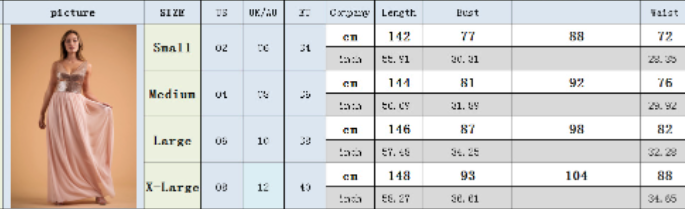 The dress is available in sizes S, M, L, and XL. Please note that Asian sizes tend to run smaller than European and American sizes, so it is recommended to choose a size larger if you are in between sizes. Please refer to the size chart before making your purchase, and feel free to contact our customer service if you need assistance with sizing.