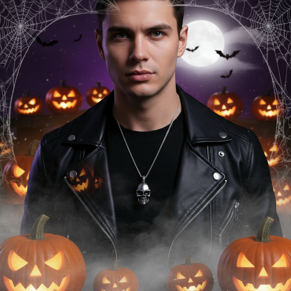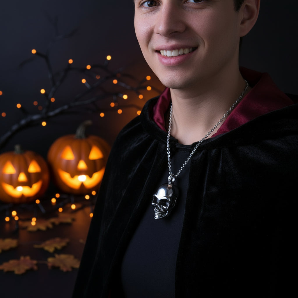 This unique necklace is made of high-quality titanium steel and features a cool skull pendant. The treatment process of electroplating gives it a sleek and shiny finish. It comes in two sizes - a large size with a chain and a small size with a leather rope, making it suitable for both men and women.