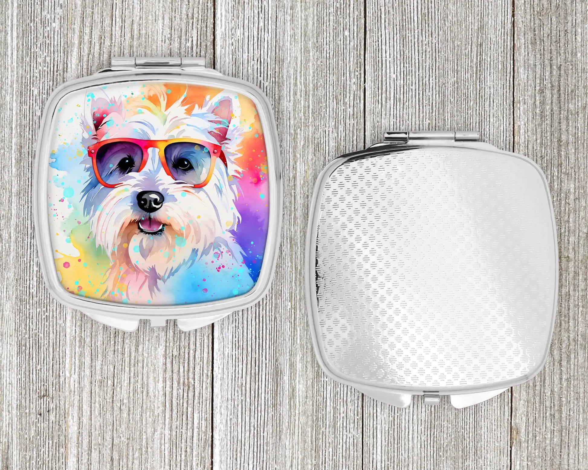 Compact Mirror featuring breed specific West Highland White Terrier artwork. Introducing our Square Compact Mirror, a blend of elegance, functionality, and compactness, perfect for on-the-go touch-ups. This Silvertone metal mirror, with dimensions of 2.75 inches x 3 inches x .3 inches, fits effortlessly into your purse, handbag, or pocket, ensuring that you can check your appearance anytime, anywhere. Our compact mirror stands out with its eye-catching artwork on the front, adding a dash of style to this practical accessory. It is more than just a mirror; it's a statement piece that reflects your personality and aesthetic. When opened, this compact reveals two mirrors inside, doubling your perspective for precise touch-ups. The Silvertone metal construction ensures durability while maintaining a lightweight feel, making it an ideal everyday carry item. Whether you're rushing to a meeting, prepping for a dinner date, or just need a quick check on your look, our Square Compact Mirror is your reliable companion. Experience the perfect blend of style and practicality with this must-have accessory.